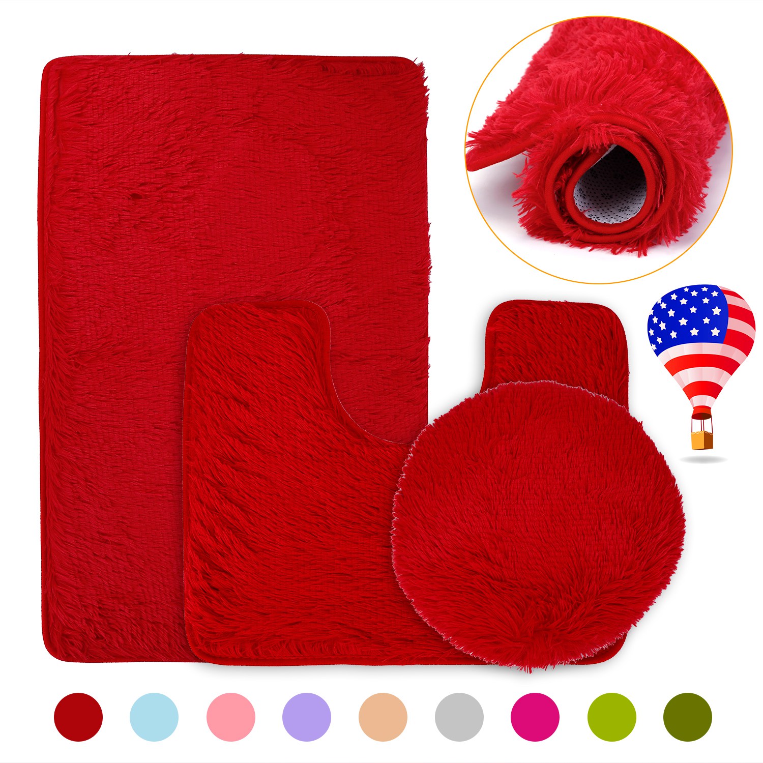Home > 3Pcs Bathroom Rug Set Shaggy Contour Toilet Lid Cover Plush Mat Anti-Slip Absorbent Bath Carpet For Tub Shower Bathroom