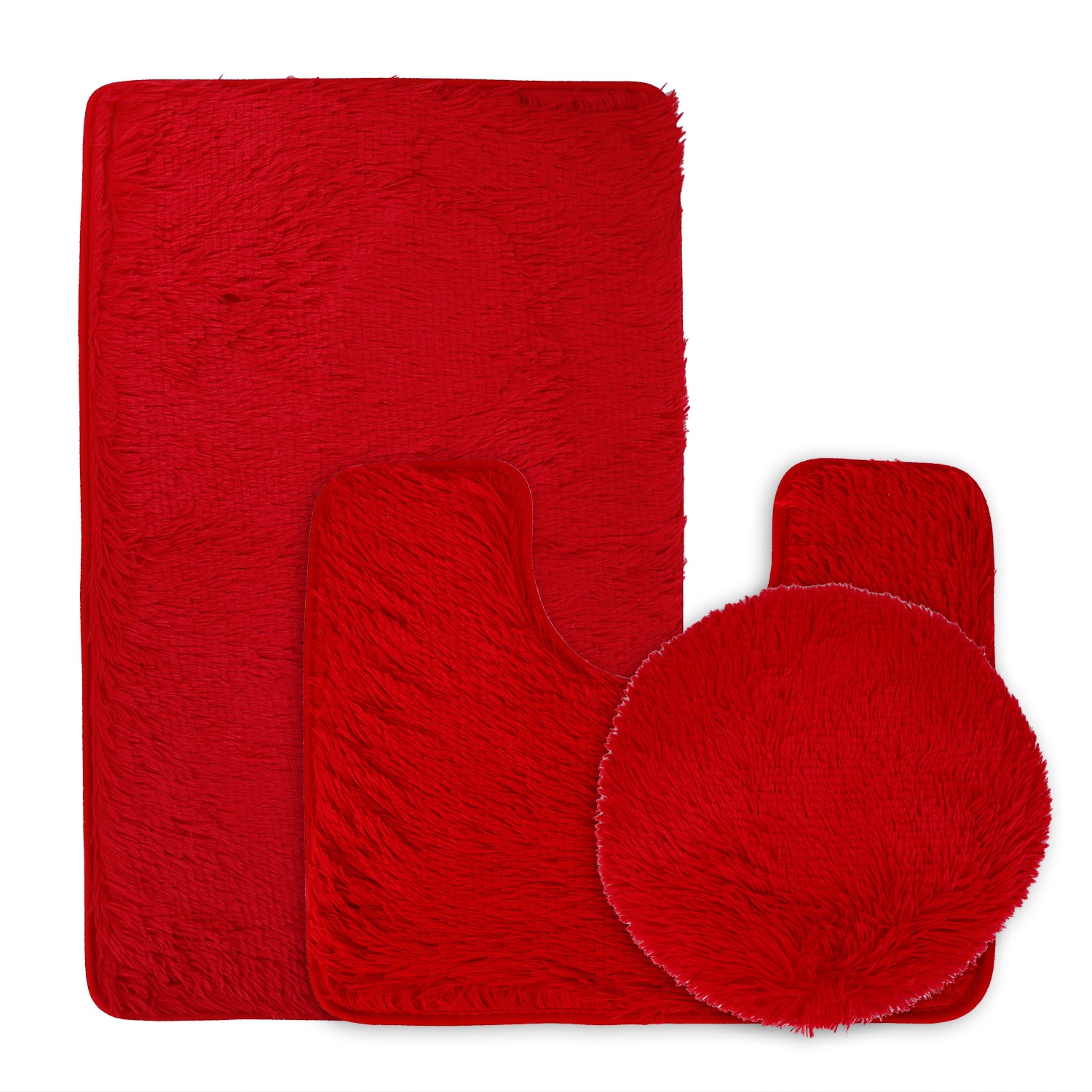 3Pcs Bathroom Rug Set Shaggy Contour Toilet Lid Cover Plush Mat Anti-Slip Absorbent Bath Carpet For Tub Shower Bathroom