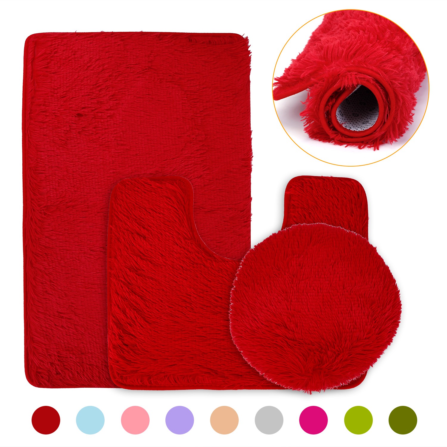 Home > 3Pcs Bathroom Rug Set Shaggy Contour Toilet Lid Cover Plush Mat Anti-Slip Absorbent Bath Carpet For Tub Shower Bathroom