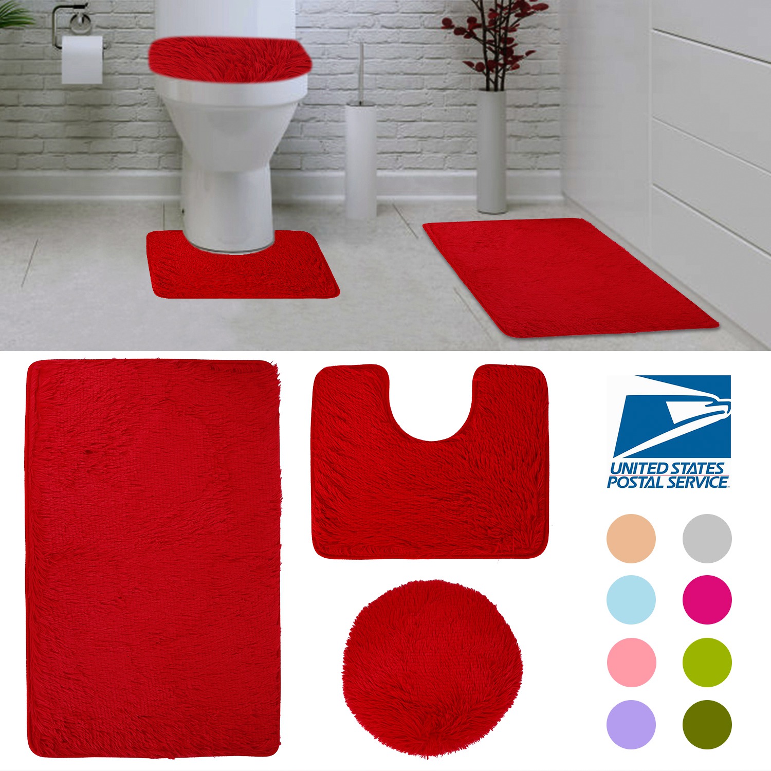 Home > 3Pcs Bathroom Rug Set Shaggy Contour Toilet Lid Cover Plush Mat Anti-Slip Absorbent Bath Carpet For Tub Shower Bathroom