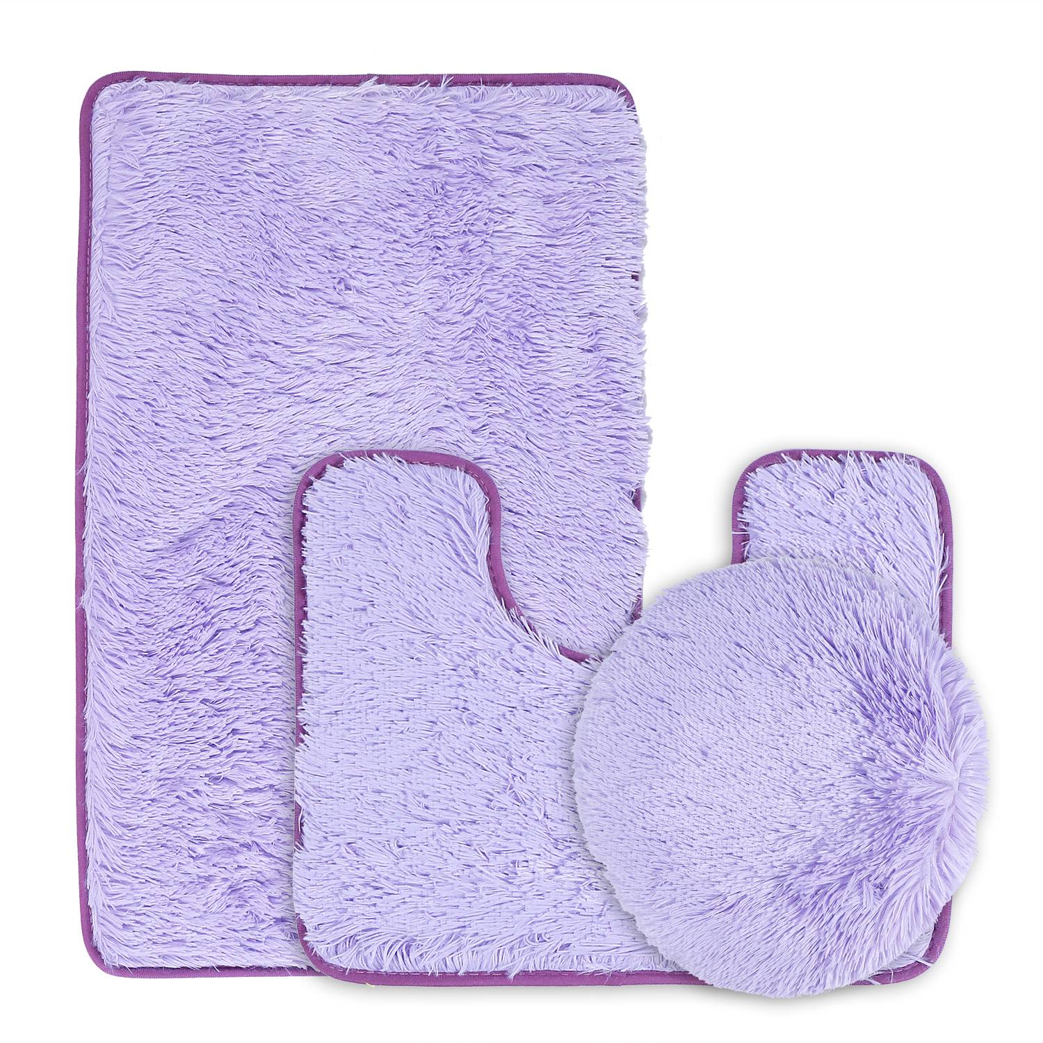 3Pcs Bathroom Rug Set Shaggy Contour Toilet Lid Cover Plush Mat Anti-Slip Absorbent Bath Carpet For Tub Shower Bathroom