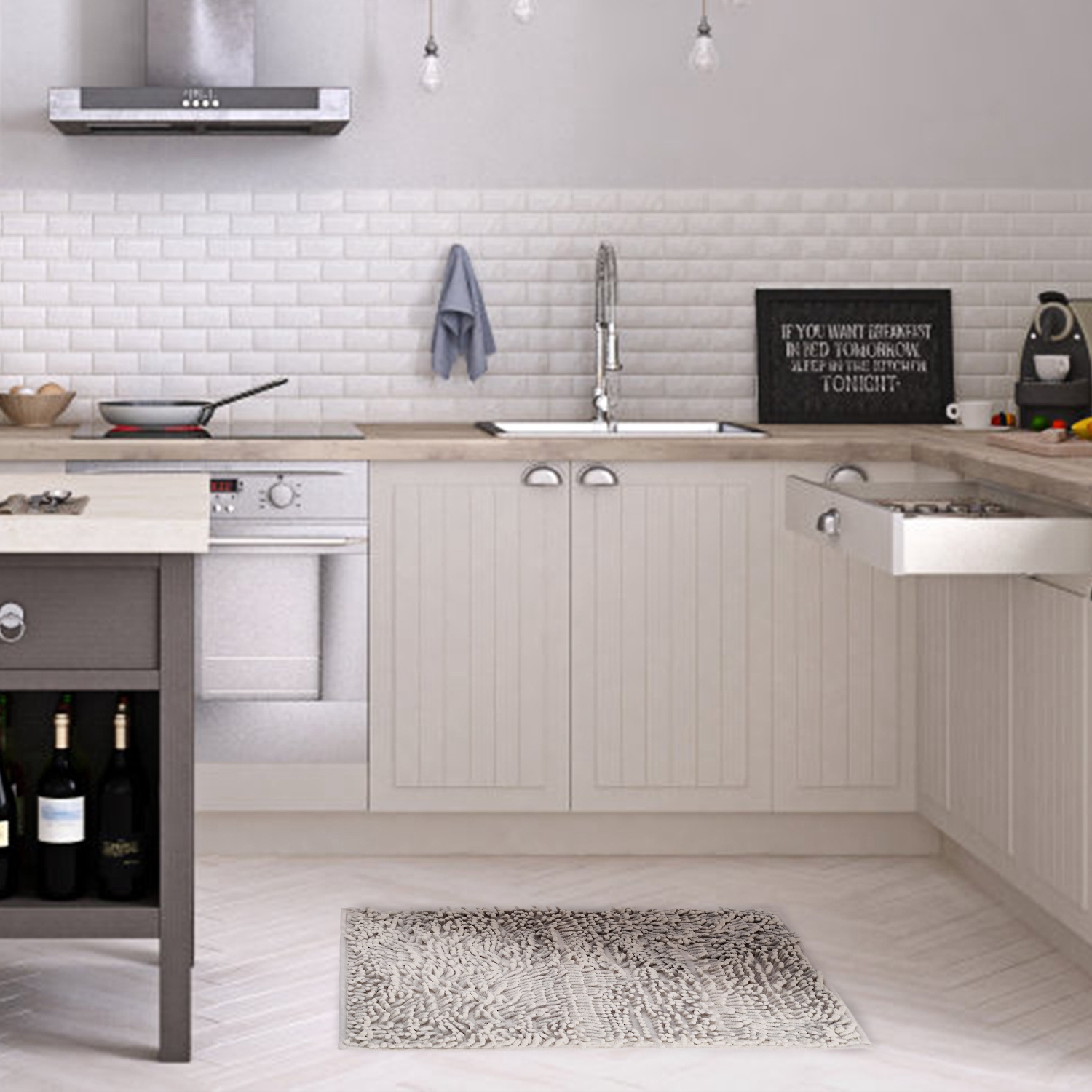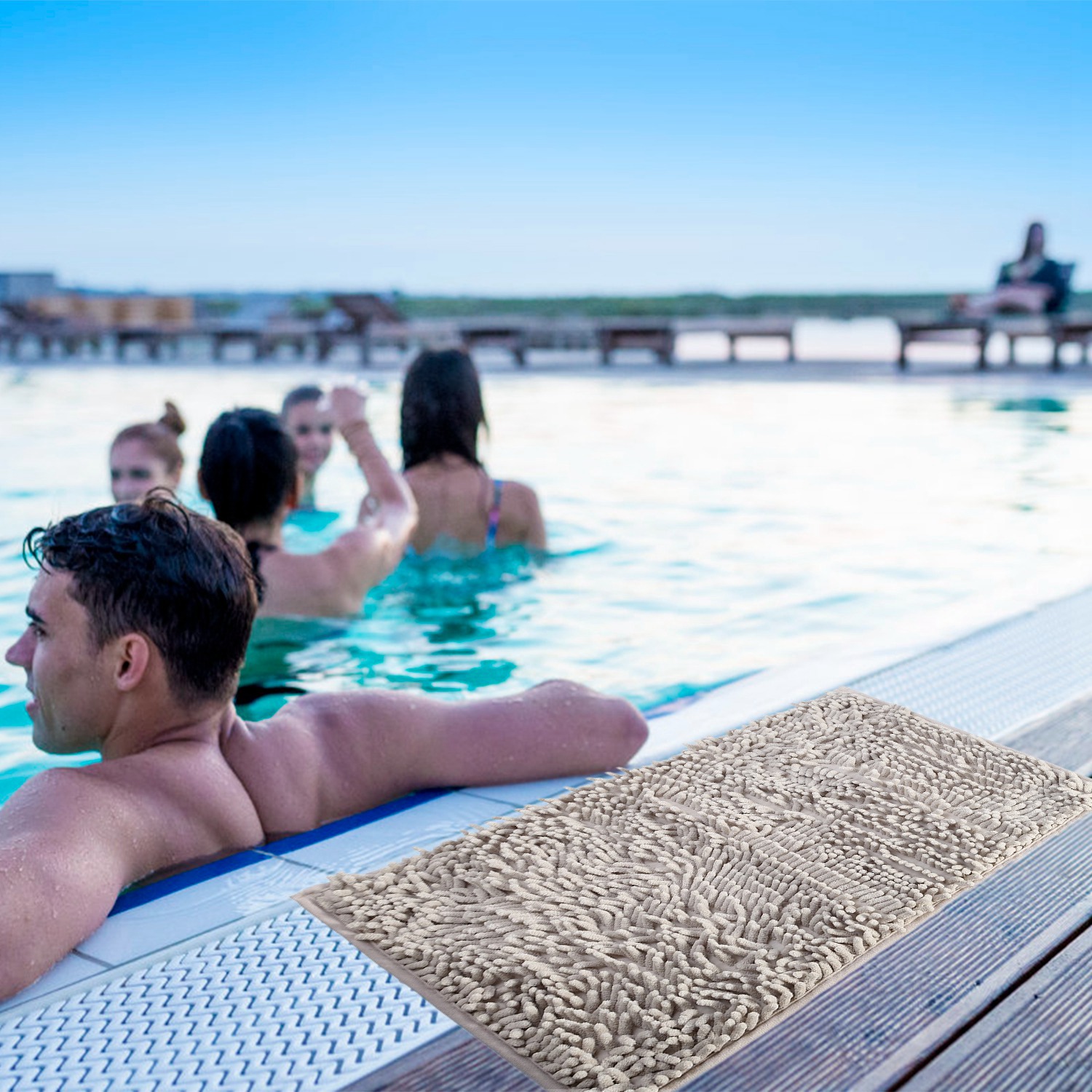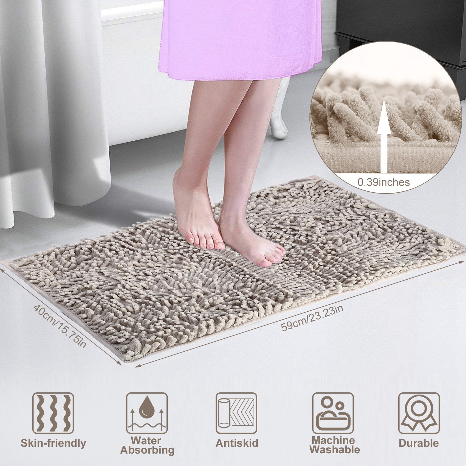 Our bathroom mat is made out of chenille fabric microfiber, anti-skid and comfortable. High-pile and thick Chenille fabric free your floors from dripping water while you're stepping out of the bath. PVC Latex bottom and small pattern is designed to prevent skidding and shifting, to protect you and your family members from slipping and falling. Machine washable and durable enables it to be widely used in bathroom, toilet, poolside, or beauty care business etc..