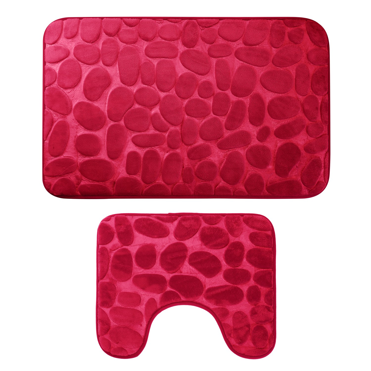 Home > 2 Pcs/Set Bathroom Rugs Luxury Flannel Non-Slip Bathroom Rugs Set Soft Pebbles Shower Absorbent Carpet U-Shaped Toilet Mat Washable for Bathroom Entra