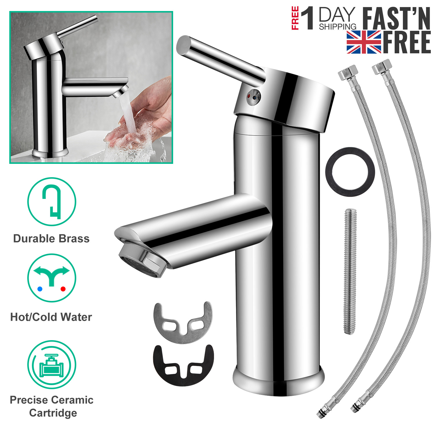 Bathroom Sink Faucet Single Handle One Hole Basin Cold/Hot Mixer Tap Brass Construction Chrome Finish UK Standard