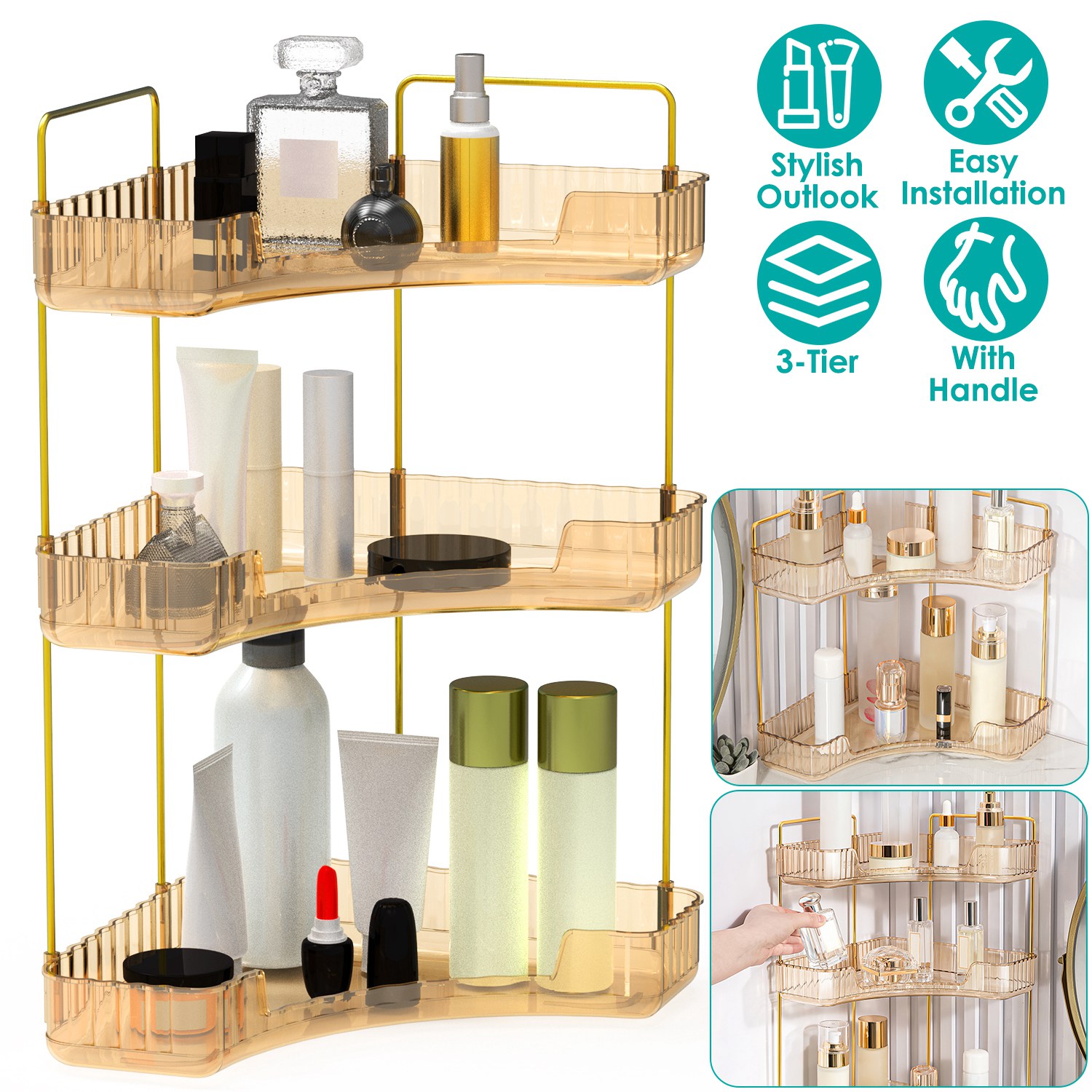 Home > Bathroom Countertop Organizer 3 Tier Corner Makeup Storage Shelf Vanity Cosmetic Perfume Tray Clear Corner Rack for Bedroom Bathroom Kitchen