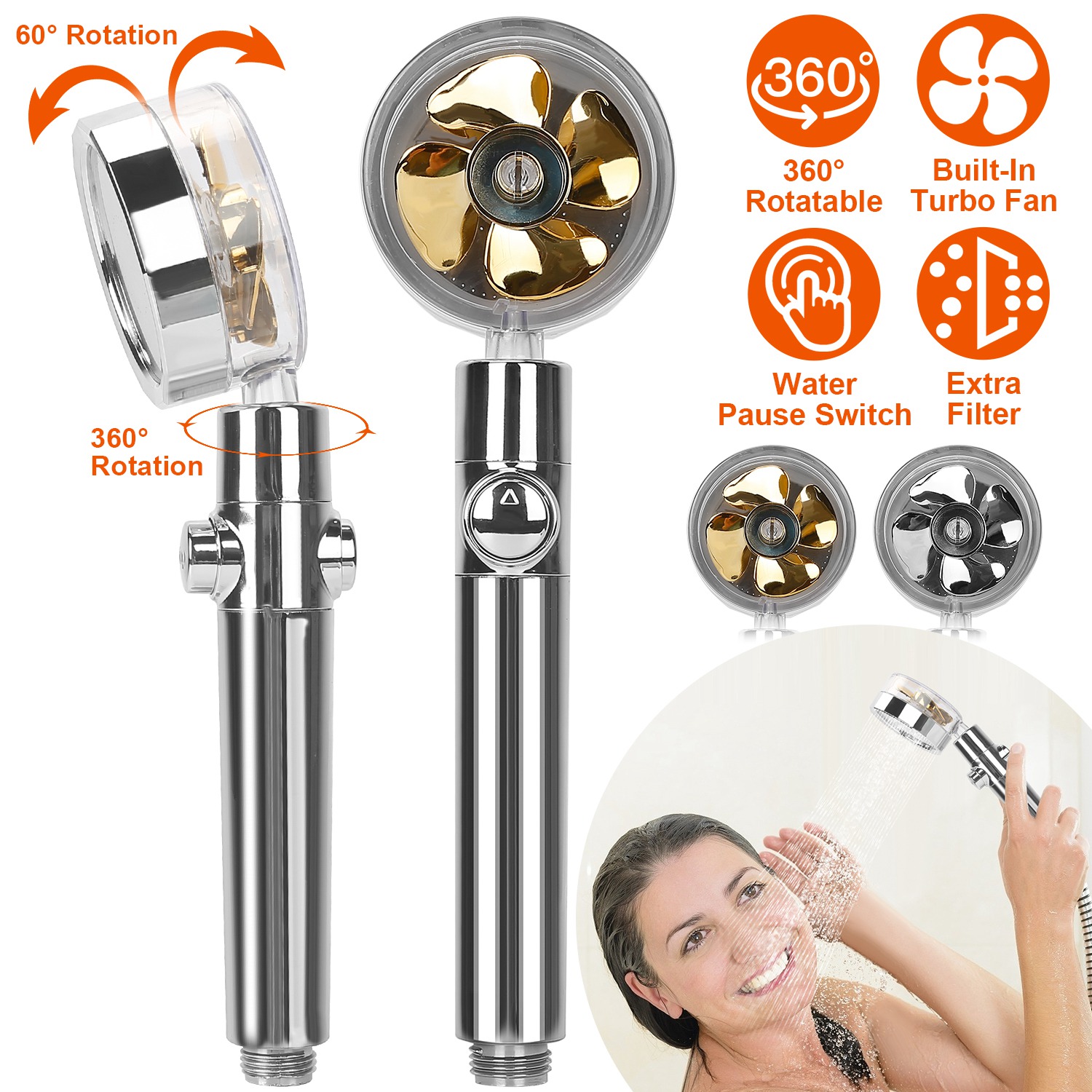 Home > High Pressure Shower Head 360° Rotating Water Saving Handheld Shower Head Powerful Turbo Fan Shower Head w/ Filter Pause Switch