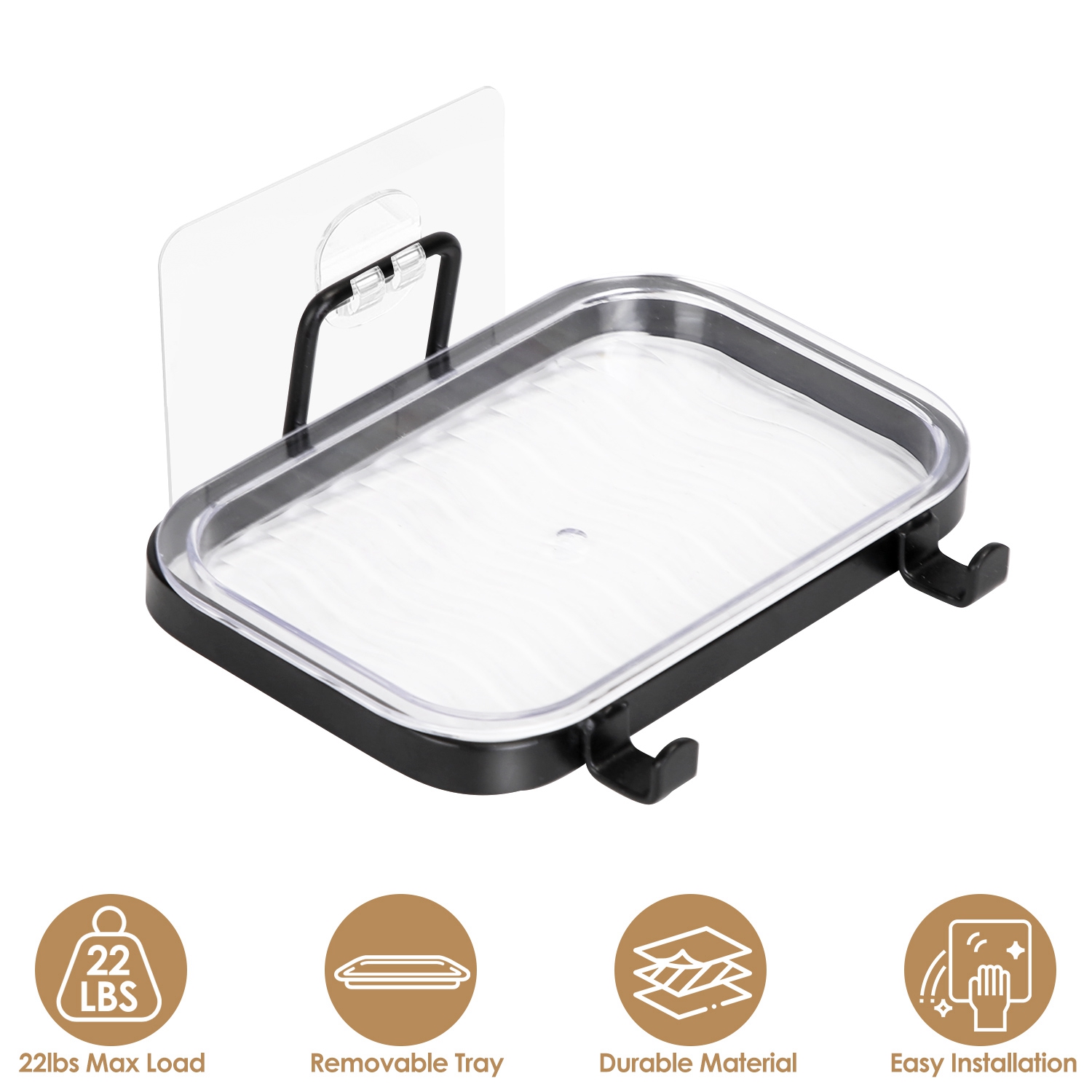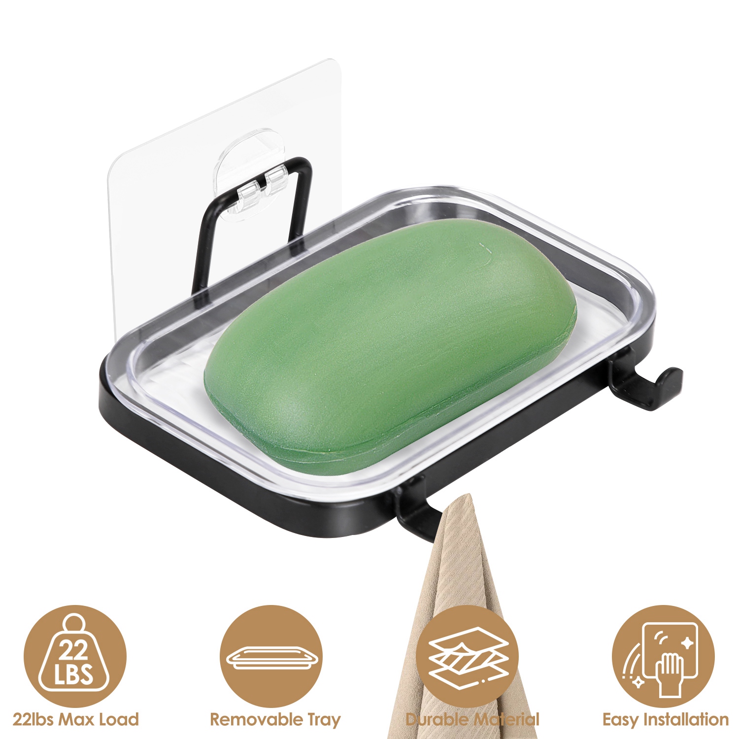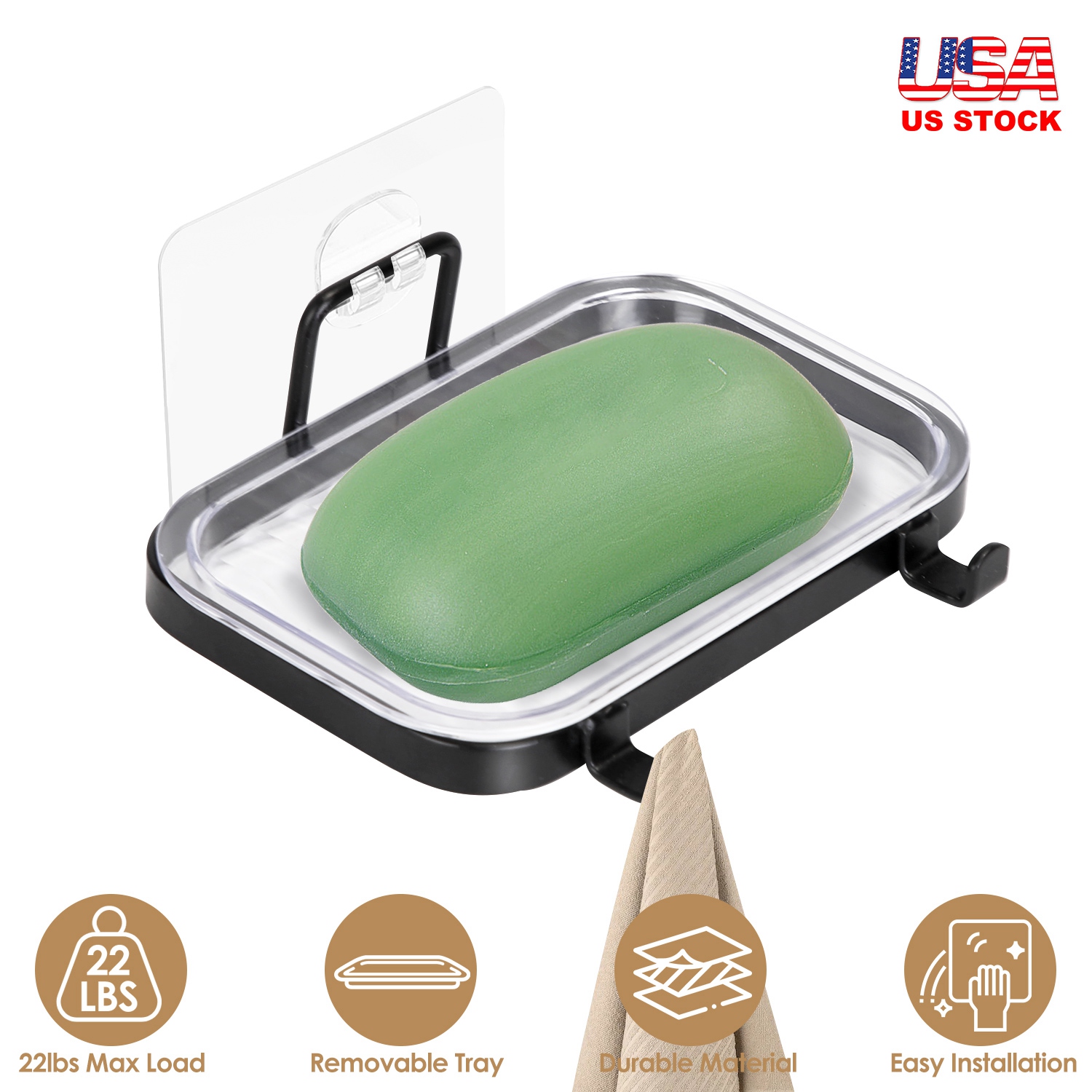 Soap Dish Soap Bar Holder Square Soap Rack Wall Mounted S Bar Shower Bathroom Self with 2 Hooks Clear Trays