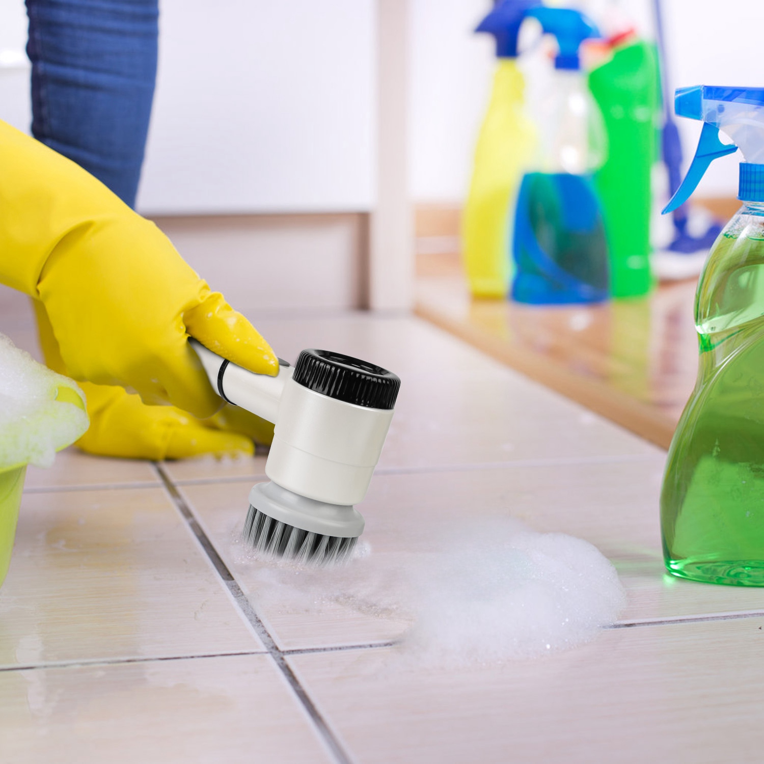 A great cleaning tool can make cleaning much more effective, easier and lower time-consuming. Adopt up to 2400RPM powerful motor, our cordless spin scrubber helps you to get rid of cable restrictions, further improve cleaning speed and achieve efficient deep cleaning. Built-in rechargeable battery supports up to 25minutes continuous working after fully charged. Come with 5 different removable brush heads, portable electric cleaning brush meets your different cleaning needs and deeply reach every unattainable corners. Ideal helper to save you from tired, time-consuming and laborious housework.