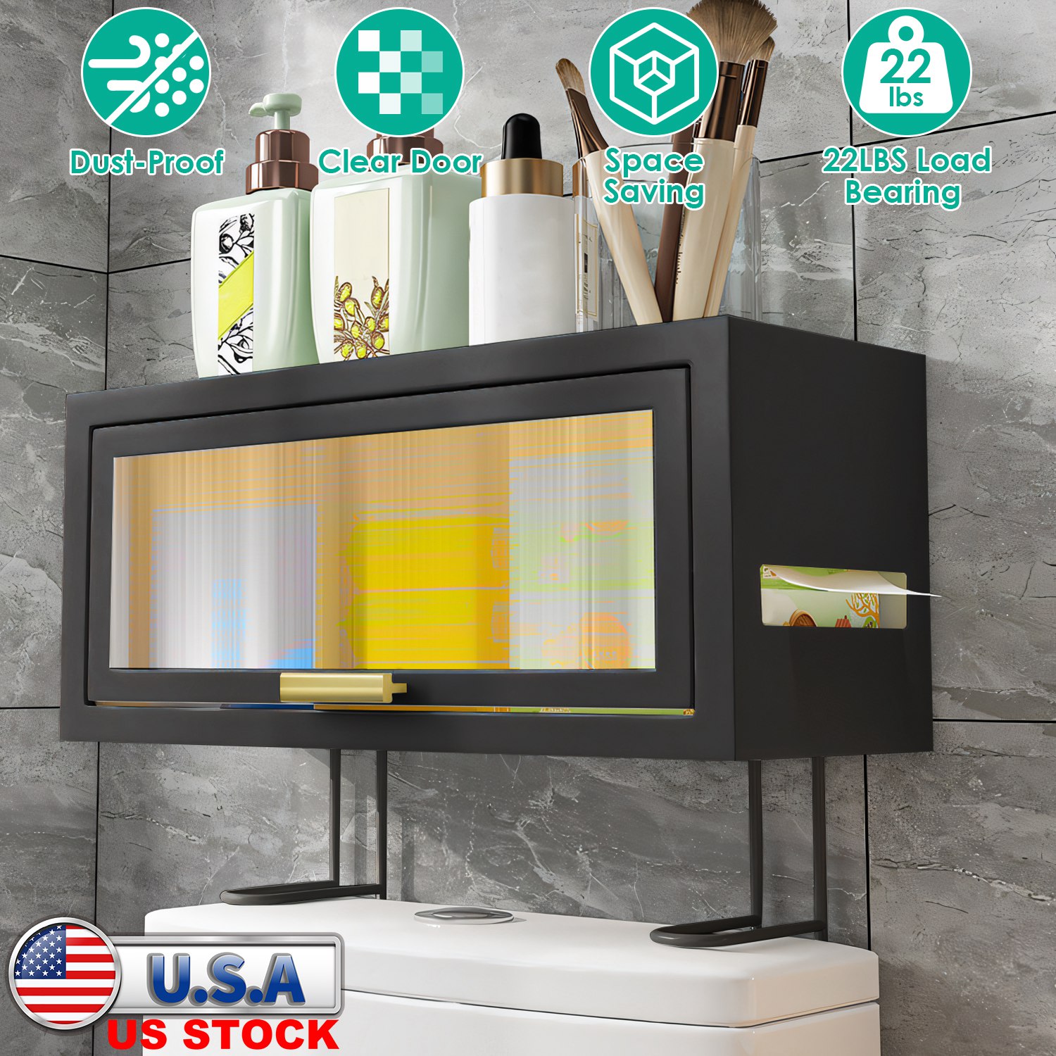 Over The Toilet Storage Cabinet Bathroom Storage Organizer Toilet Storage Box with Dustproof Transparent Magnetic Door Side Opening
