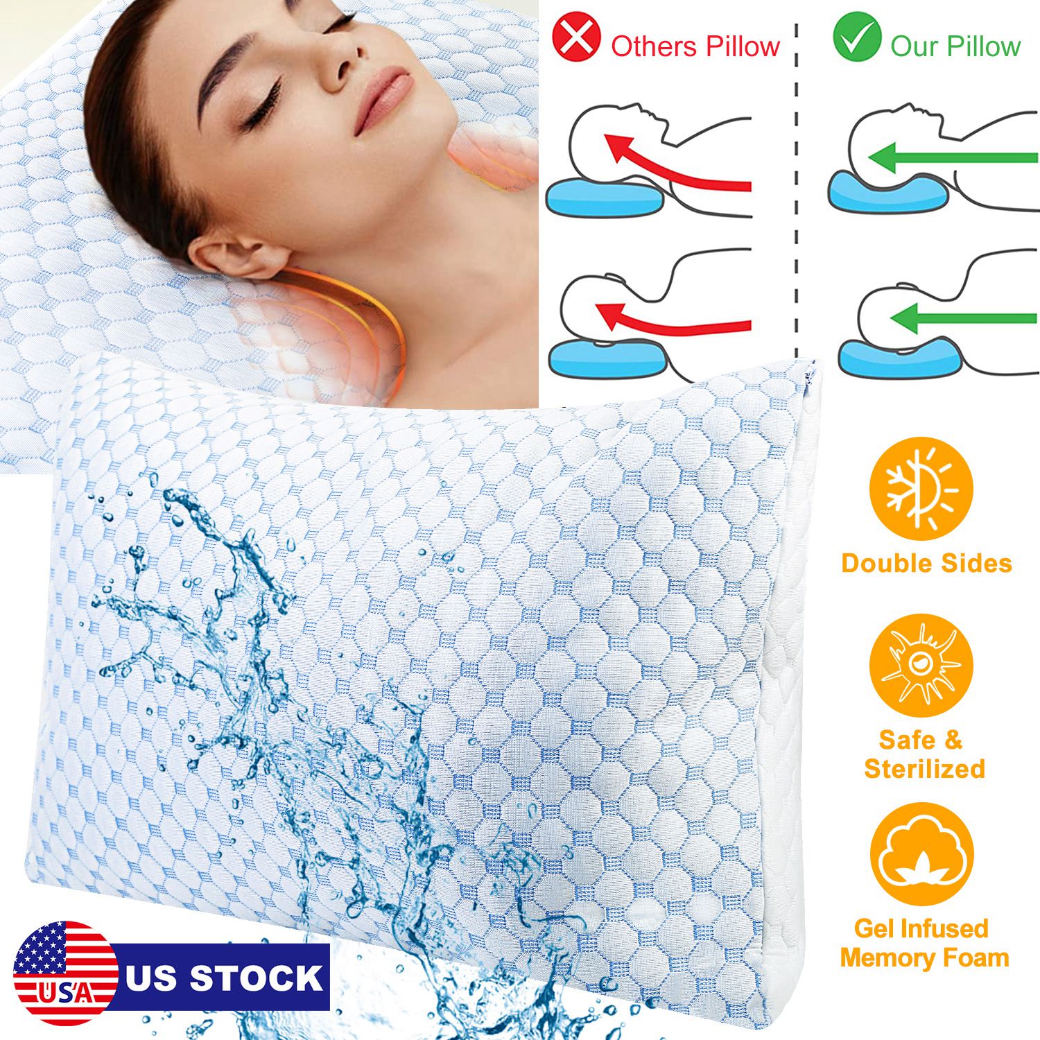 Cooling Memory Foam Pillow Ventilated Soft Bed Pillow w/ Cooling Gel Infused Memory Foam Heat Moisture Reducing Cooling Fiber Breathable Machine Washa