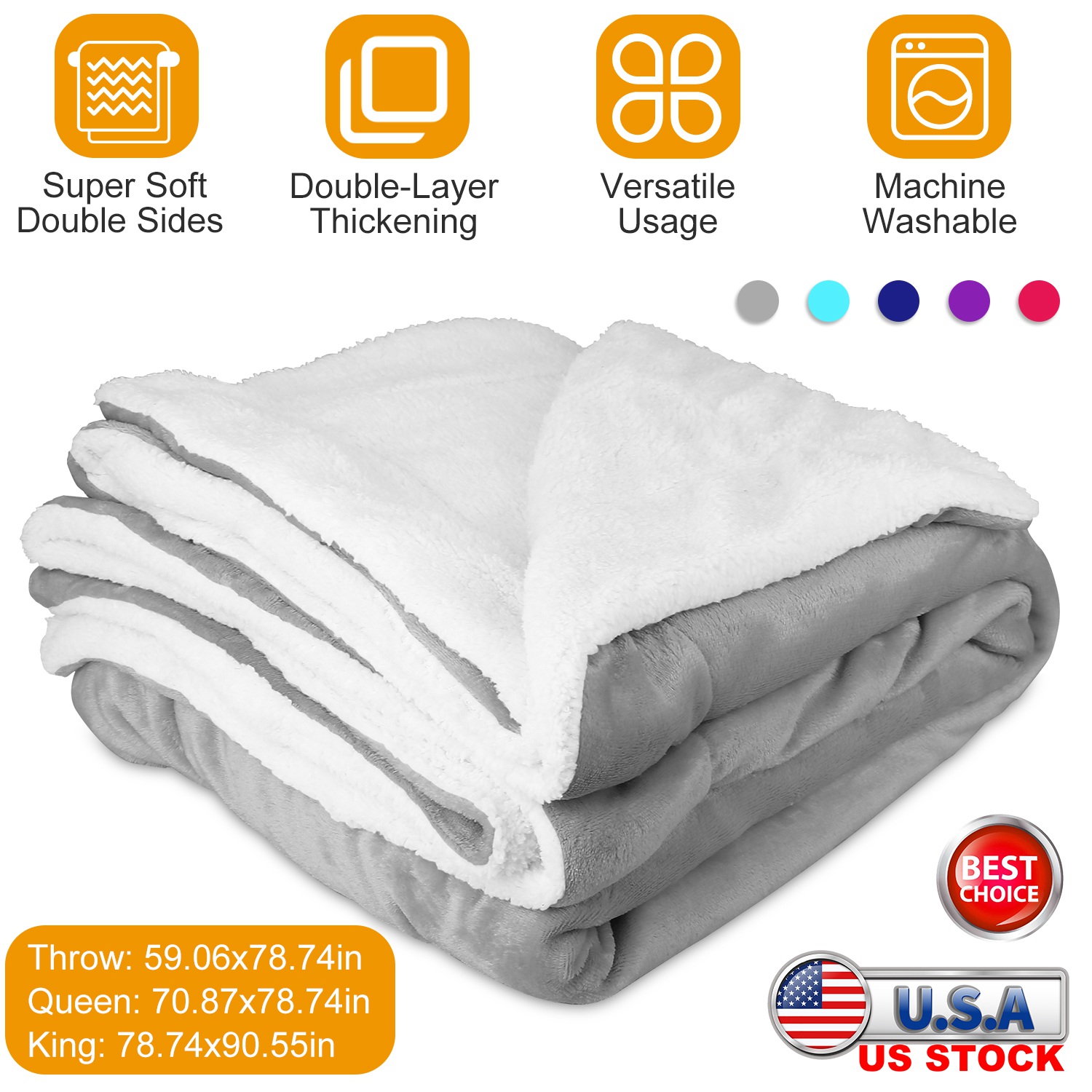 Fleece Throw Blanket Warm Soft Flannel Bed Cover Cuddly Cozy Sofa Travel Car Blanket w/ Queen King Throw Size Optional