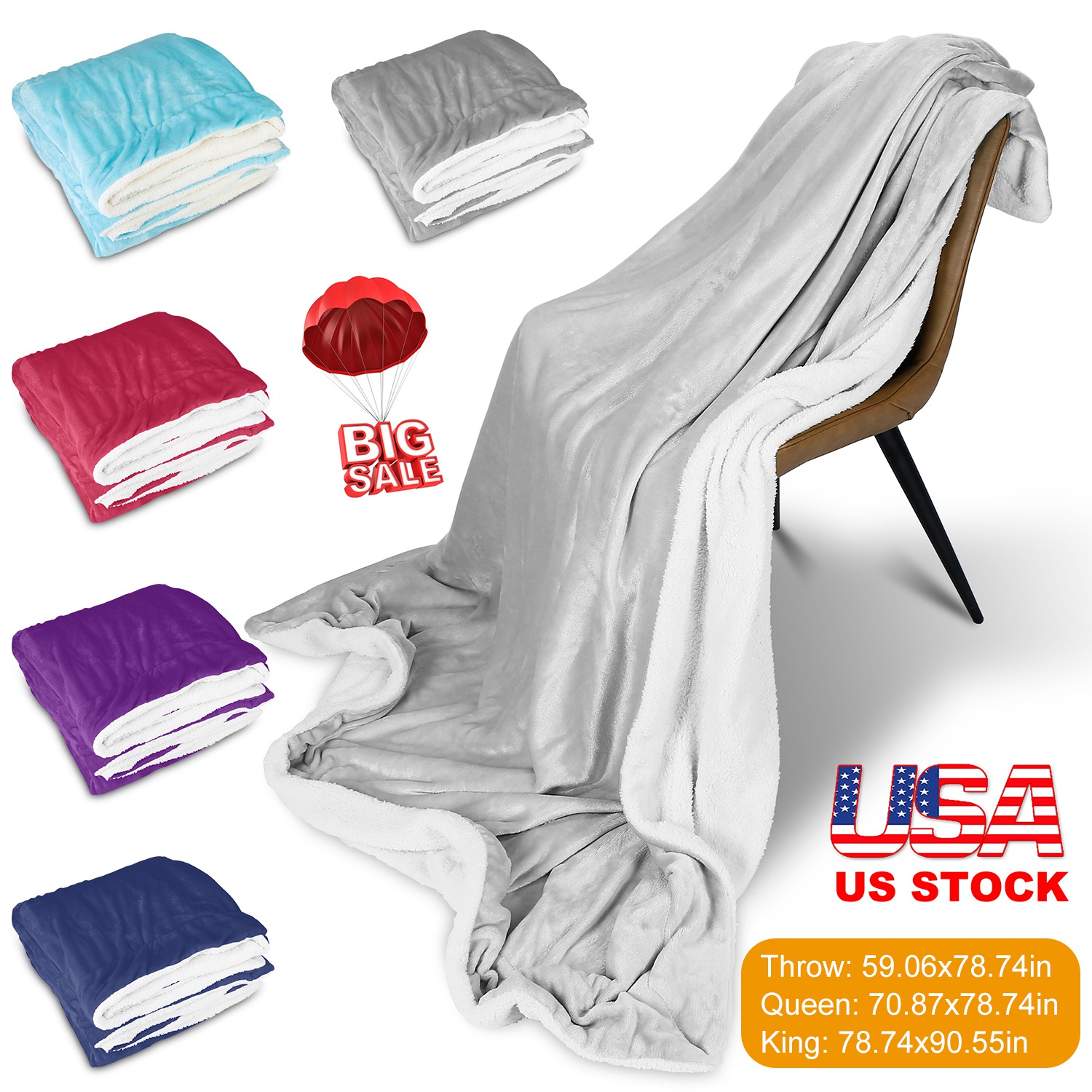 Fleece Throw Blanket Warm Soft Flannel Bed Cover Cuddly Cozy Sofa Travel Car Blanket w/ Queen King Throw Size Optional
