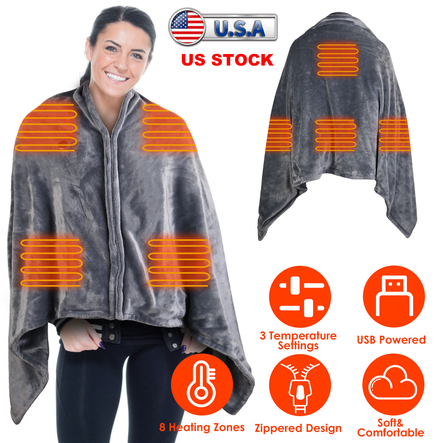 Home > USB Heated Blanket Electric Heated Blanket Heated Poncho Shawl Wrap Throw with Zipper Washable for Home Office 59*31in