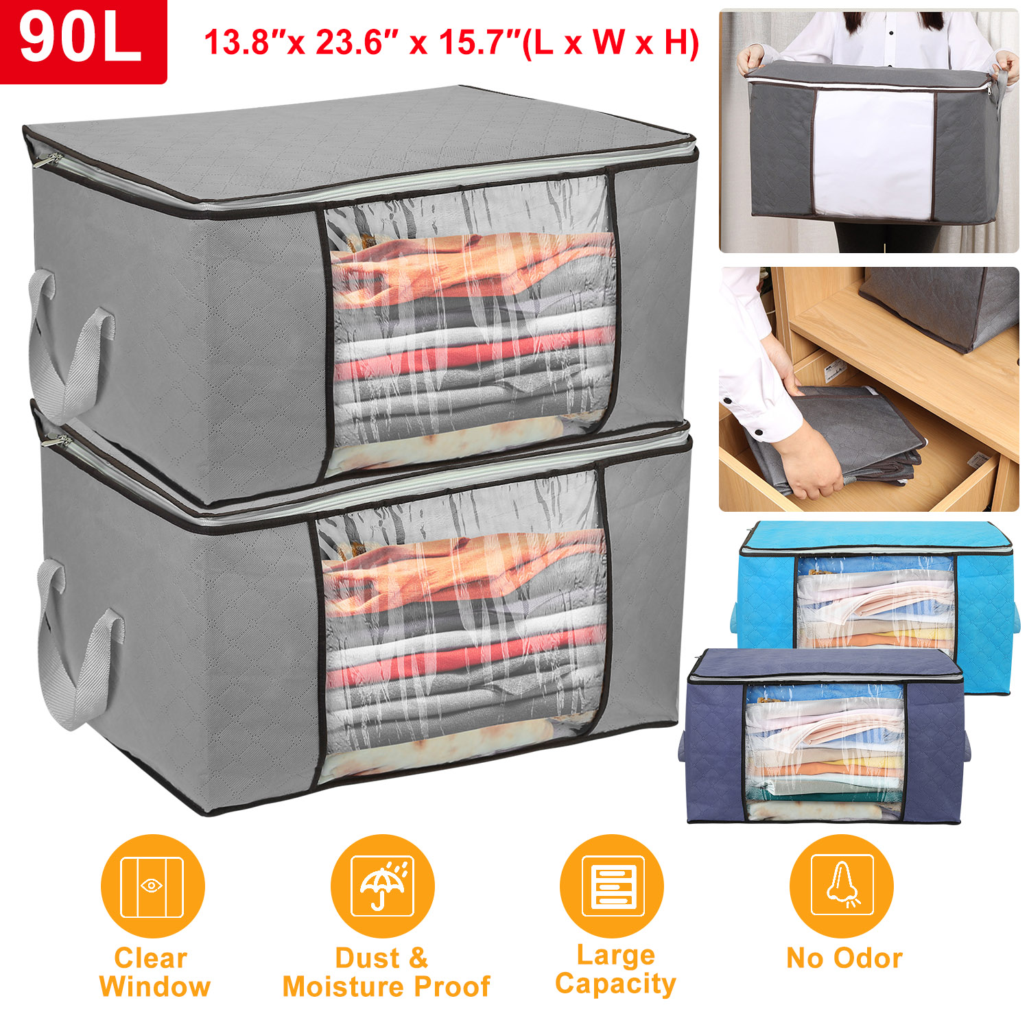 Home > 2Pcs Clothes Storage Bag 90L Large Capacity Foldable Closet Organizer w/ Thick Fabric Clear Window Dual-Zipper for Clothes Comforters Blankets Bedding