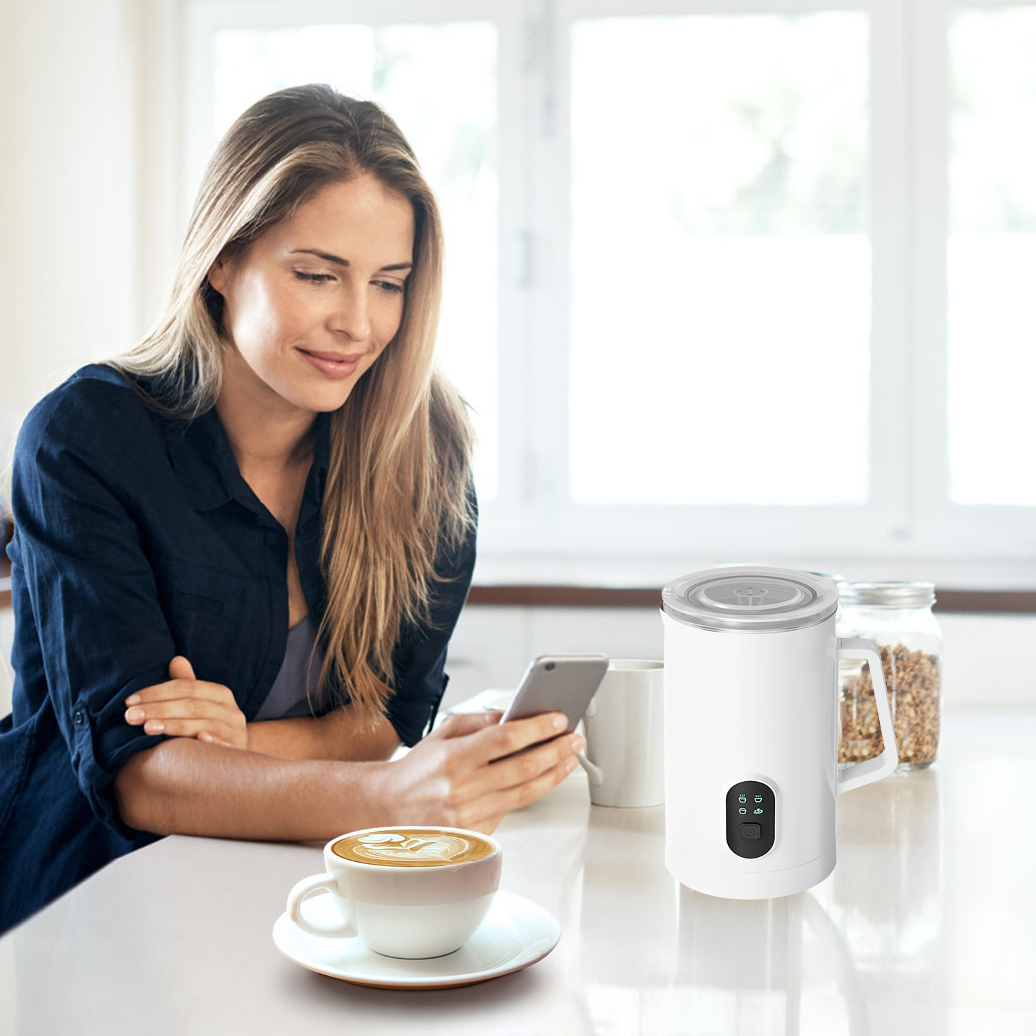 Our 4-in-1 electric milk forther adopts 4 working modes to satisfy your different demands. This 19.95OZ large capacity foam maker can heat up to 158°F in 65 to 120 seconds, You can instantly get perfect dense milk foam and enjoy delicious lattes or cappuccinos with your friends and family. Advanced noise defender technology and one button control ensure easy and quiet operation. Made of non-stick, non-toxic and rustproof stainless steel material, provide durable lifespan. A perfect new home or festival gift for your coffee-lover friends.