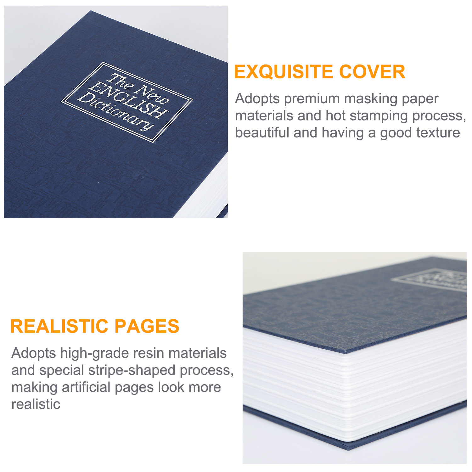 The disguised dictionary is specially designed for protecting your valuable gadgets, which features 3-number combination lock system. It looks like a traditional dictionary but much more than it. It can deceive the burglar when they steal at the situation of the criminal process is short-time. Solid steel construction interior box and real hard paper surface ensures the internal safety of valuables and for long time use. Three colors (black, blue and red) and three sizes (small, medium and large) are available. Moreover, its compact and lightweight design makes it a portable safe and perfect for home, office, RV’s, school, travel and so on.