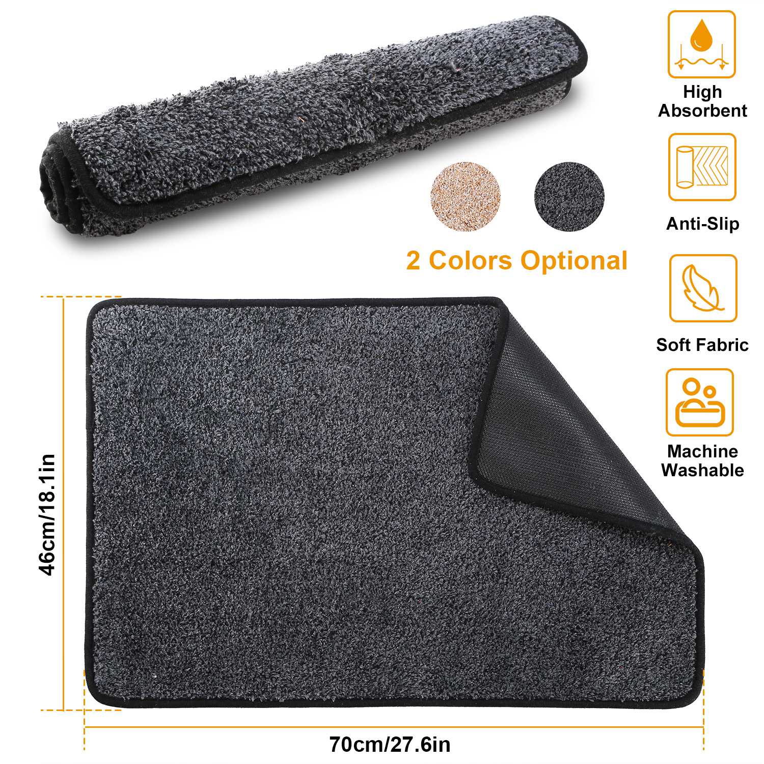 Our bathroom mat is made quality thick fabric & cotton cloth that works well in scraping off any dirt, water, dust, grit, mud, slush, sleet, grass, rain or snow and have your shoes dry instantly and pet paws clean. No more worry about dirty or wet floors. Anti-slip rubber bottom is designed to prevent skidding and shifting, to protect you and your family members from slipping and falling. Machine washable and durable enables it to be widely used as indoor front welcome mat and kitchen rug, floor mat, bedroom, back door, laundry, living room, garage, office, etc..