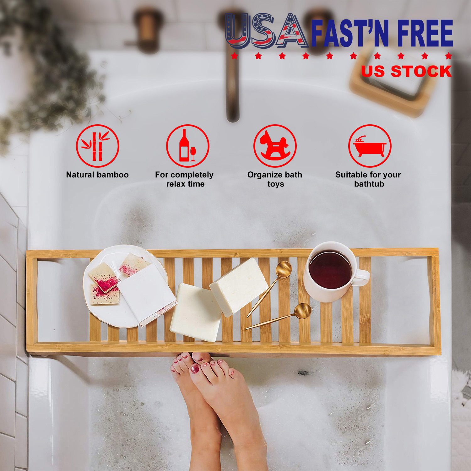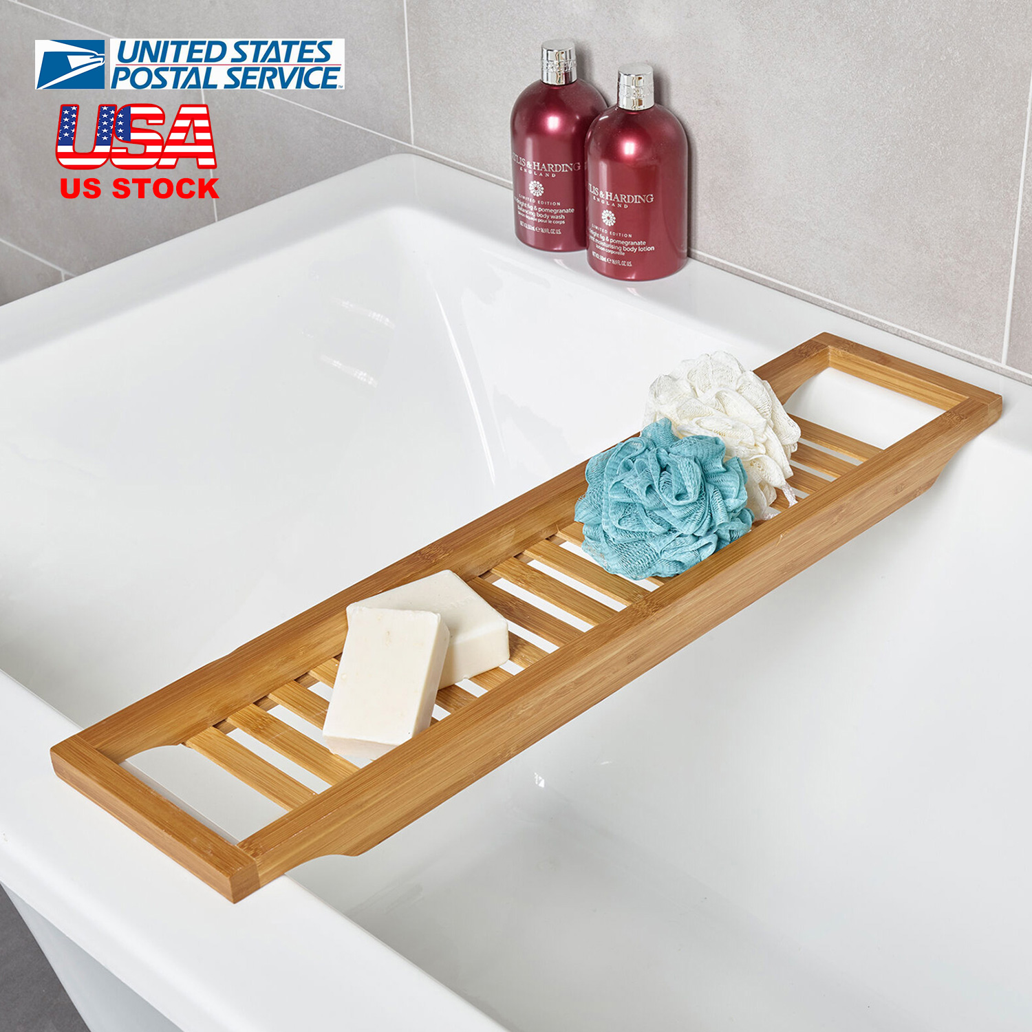 Bamboo Bathtub Tray Bath Table Bathroom Storage Rack Soap Cellphone Wine Glass Shelf Organizer