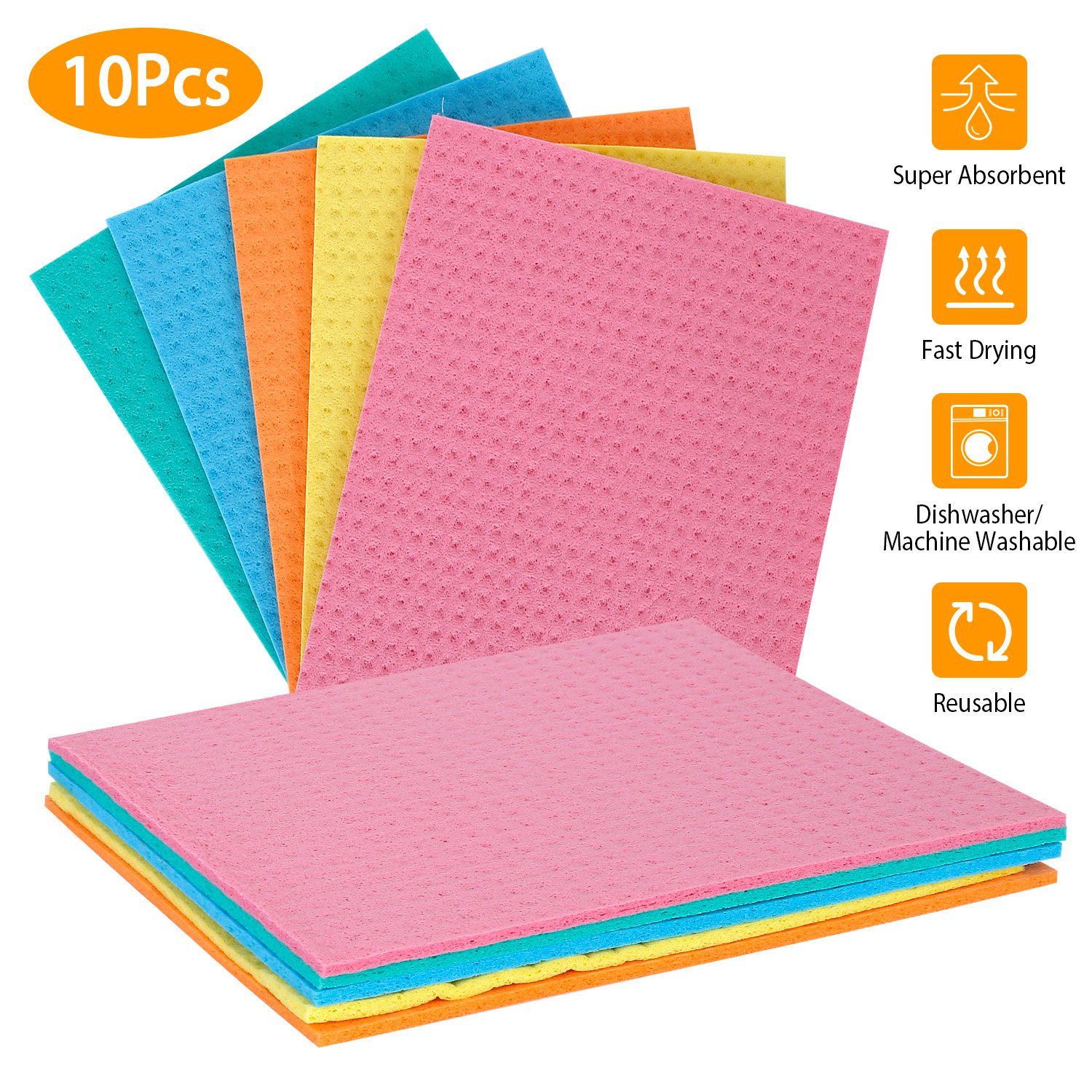 10Pcs Dish Cleaning Cloth Reusable Wood Pulp Cotton Sponge Kitchen Wipe Rags No Odor Absorbent Quick Dry Dish Hand Towel