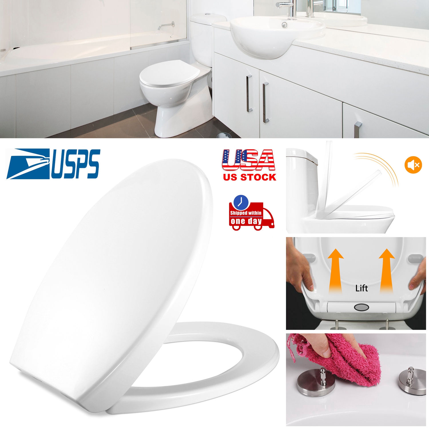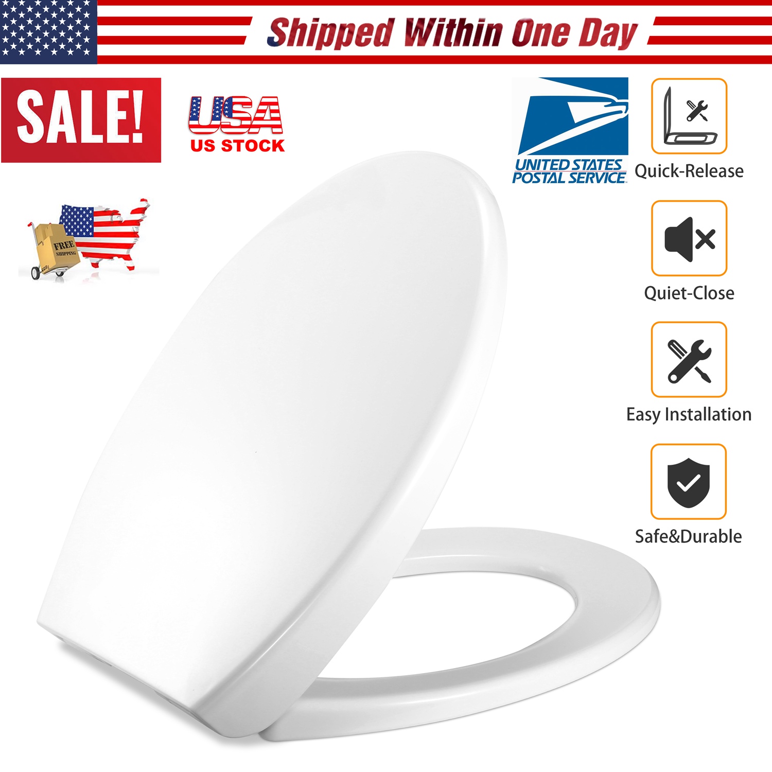 Oval Shaped Toilet Seat with Grip-Tight Seat Bumpers Heavy-Duty Quiet-Close Quick-Release Easy Cleaning White UK