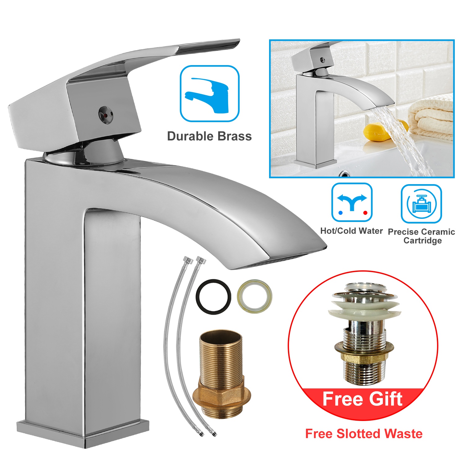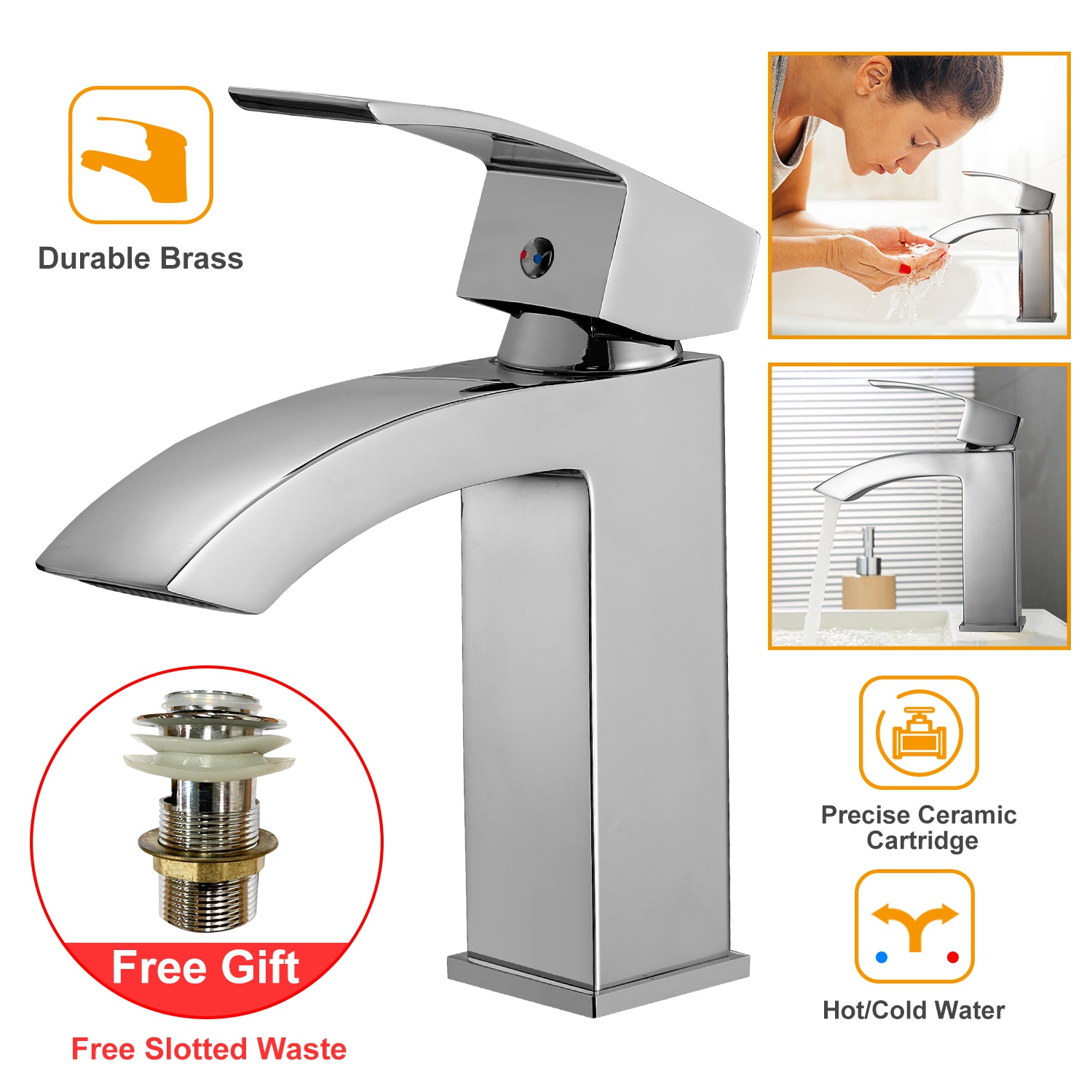 Bathroom Sink Faucet Waterfall Basin Faucet One Handle/Hole Cold/Hot Mixer Tap Chrome Finish Basin Sink Tap