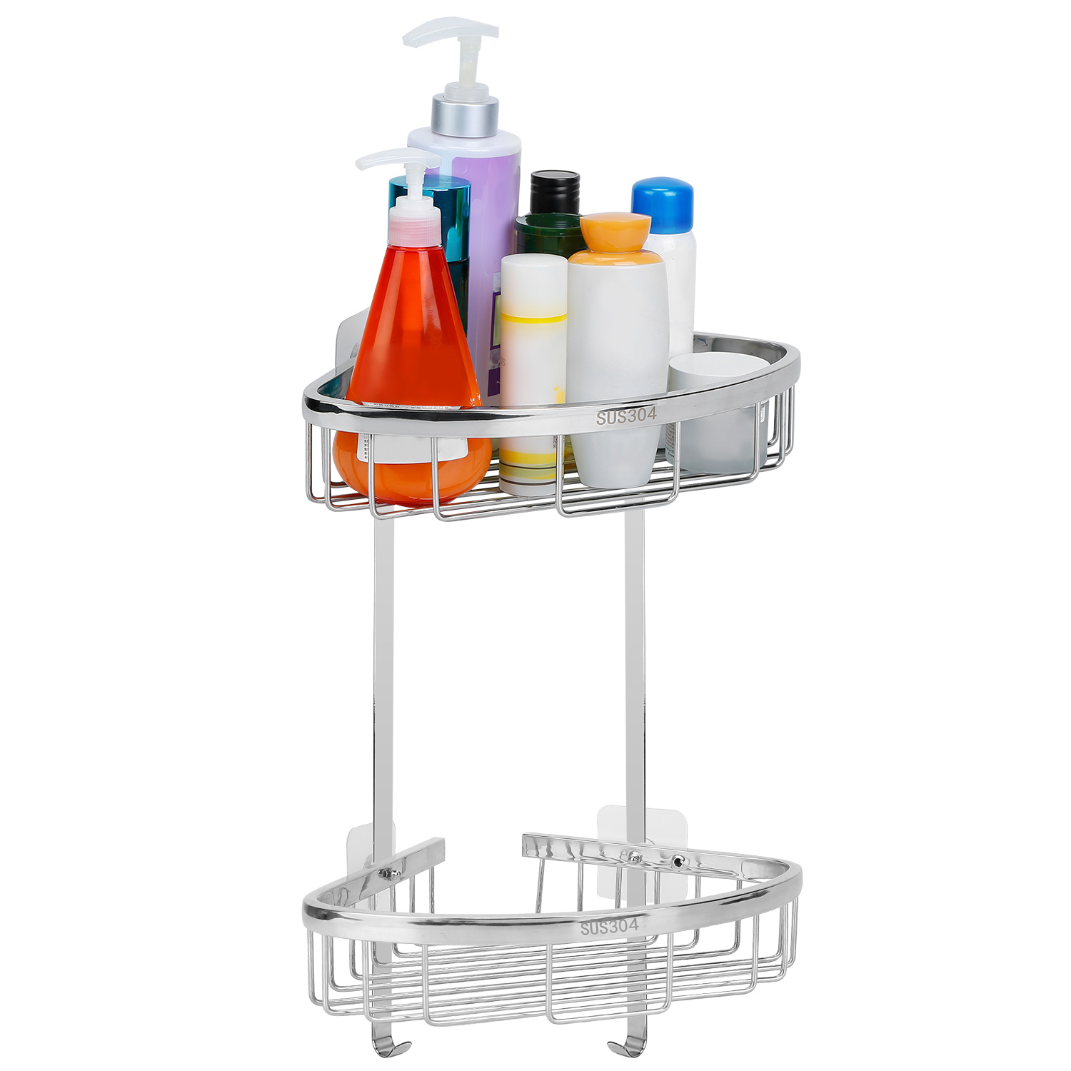 Home > 2-Tier Corner Shower Caddy Shelf Stainless Steel Wall Mount Shampoo Organizer Basket Rustproof Adhesive Toiletries Rack For Bathroom Kitchen Dorm