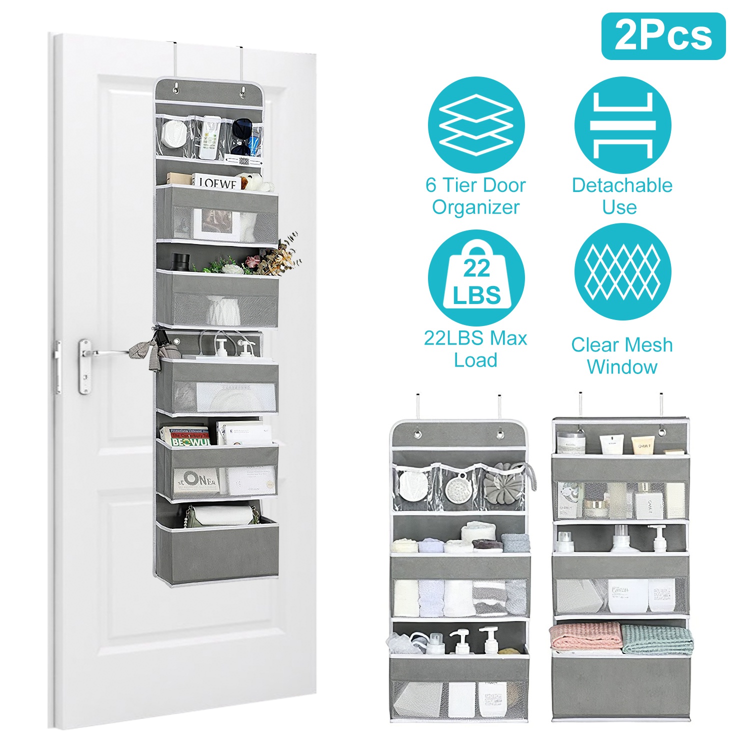 2Pcs Over The Door Organizer 6 Tier Hanging Basket Detachable Behind Door Hanging Pantry Tilt-Resistant for Bathroom Bedroom