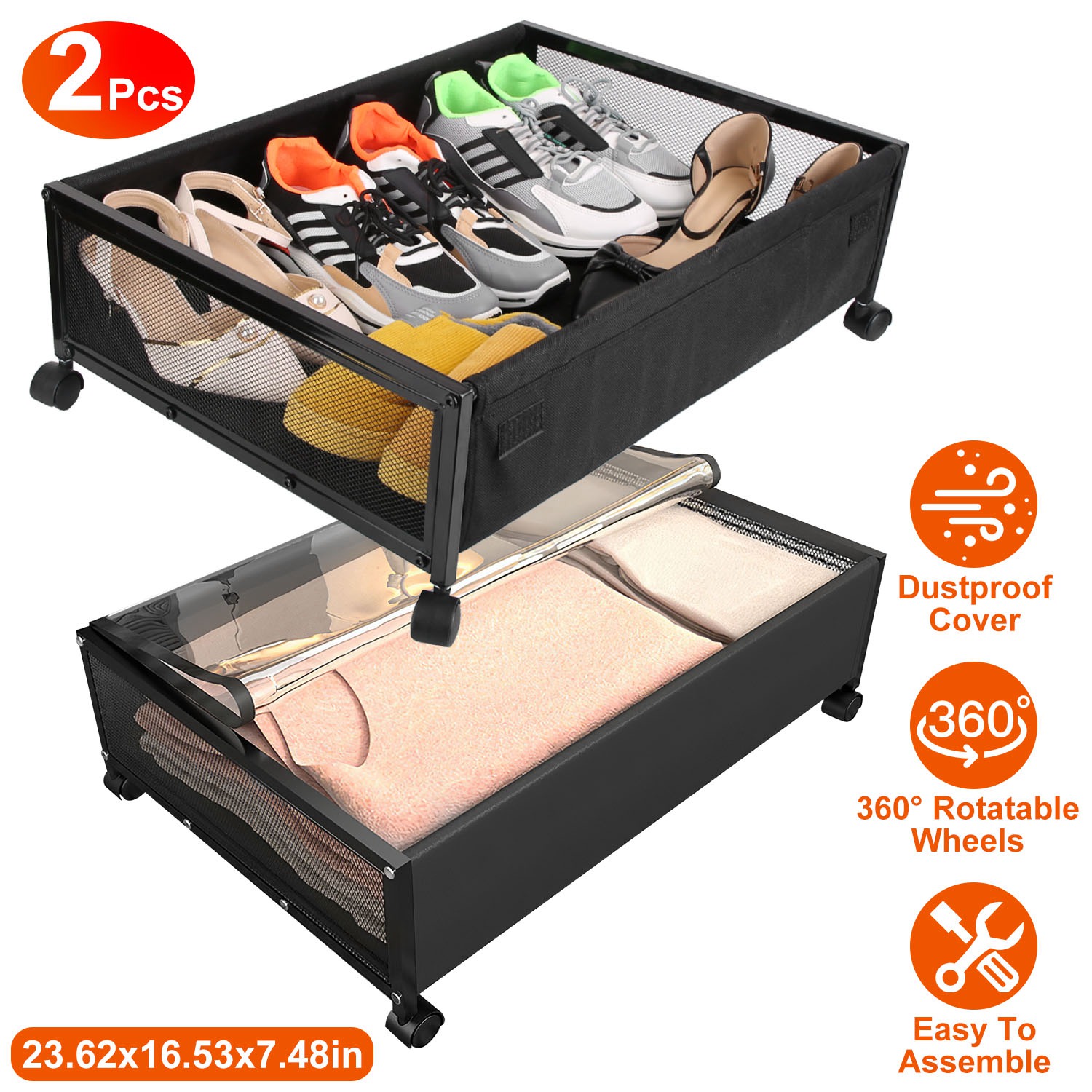 Home > 2Pcs Under Bed Storage Containers with 360° Rotatable Wheels Visible Dustproof Cover Under Bed Drawer with Clear Window Bedroom Storage Organizer