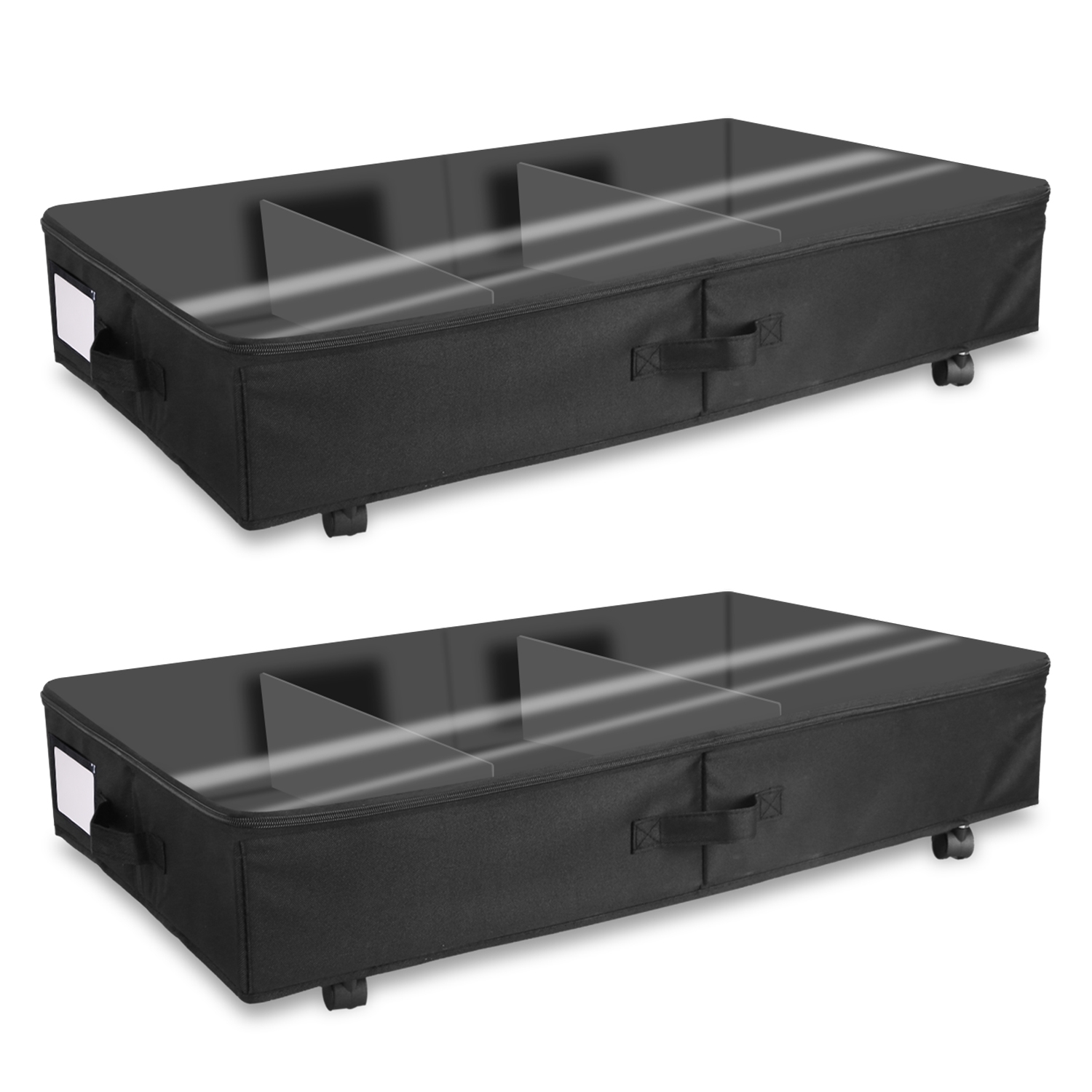 Home > 2Pcs Under Bed Storage Container With Lockable Wheels Dividers Label Dustproof Clear Lid Strap Handles Rolling Under Bed Metal Drawer for Clothes Shoe