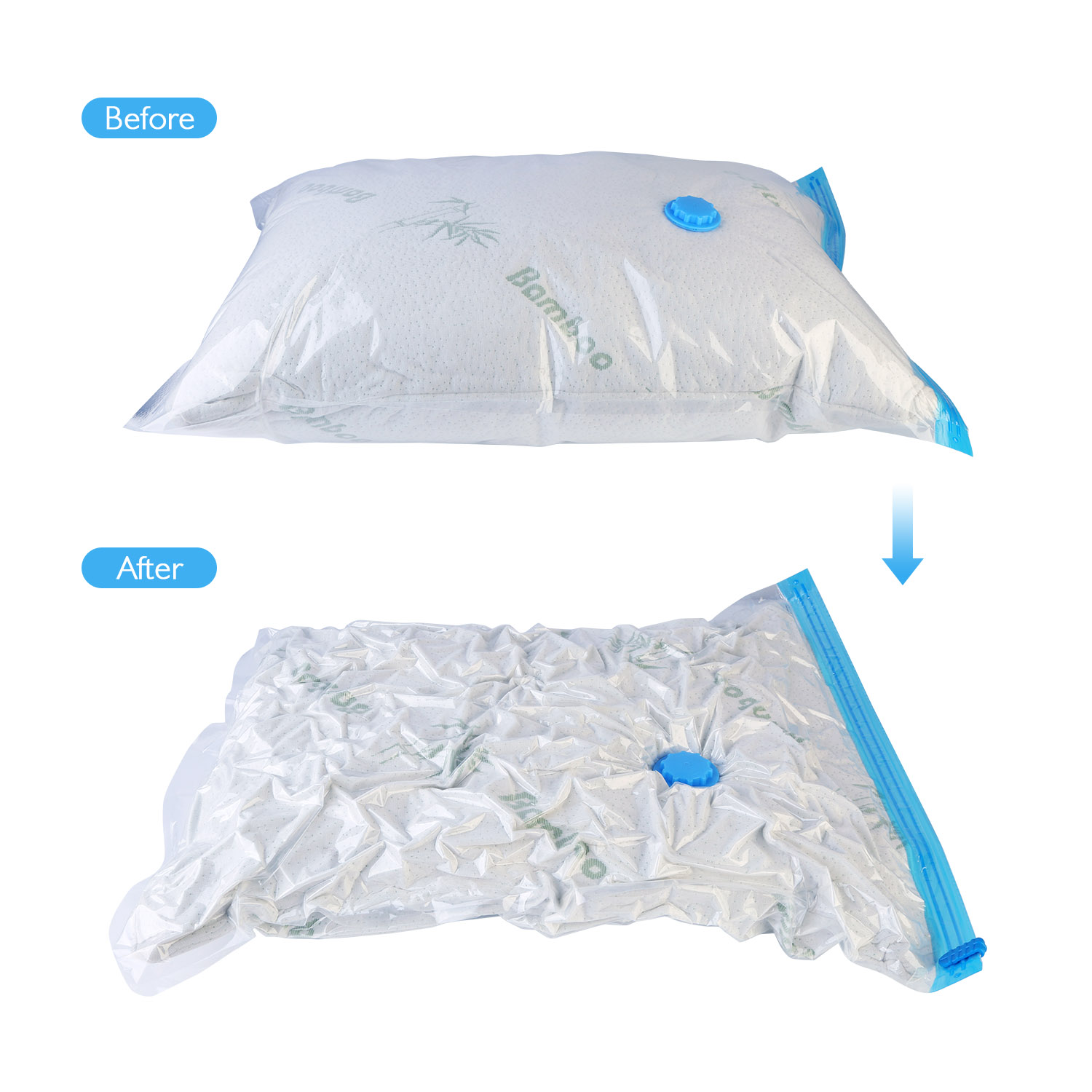 These bags of limitless storage can hold just about anything fabric that you need squishing down into a manageable block. Reduce the original volume by almost 80%. You can use these for blankets, comforters, mattress pads, large pillows, winter clothes, and dryer sheet to save closets space around your house. It also works awesome while you are moving.