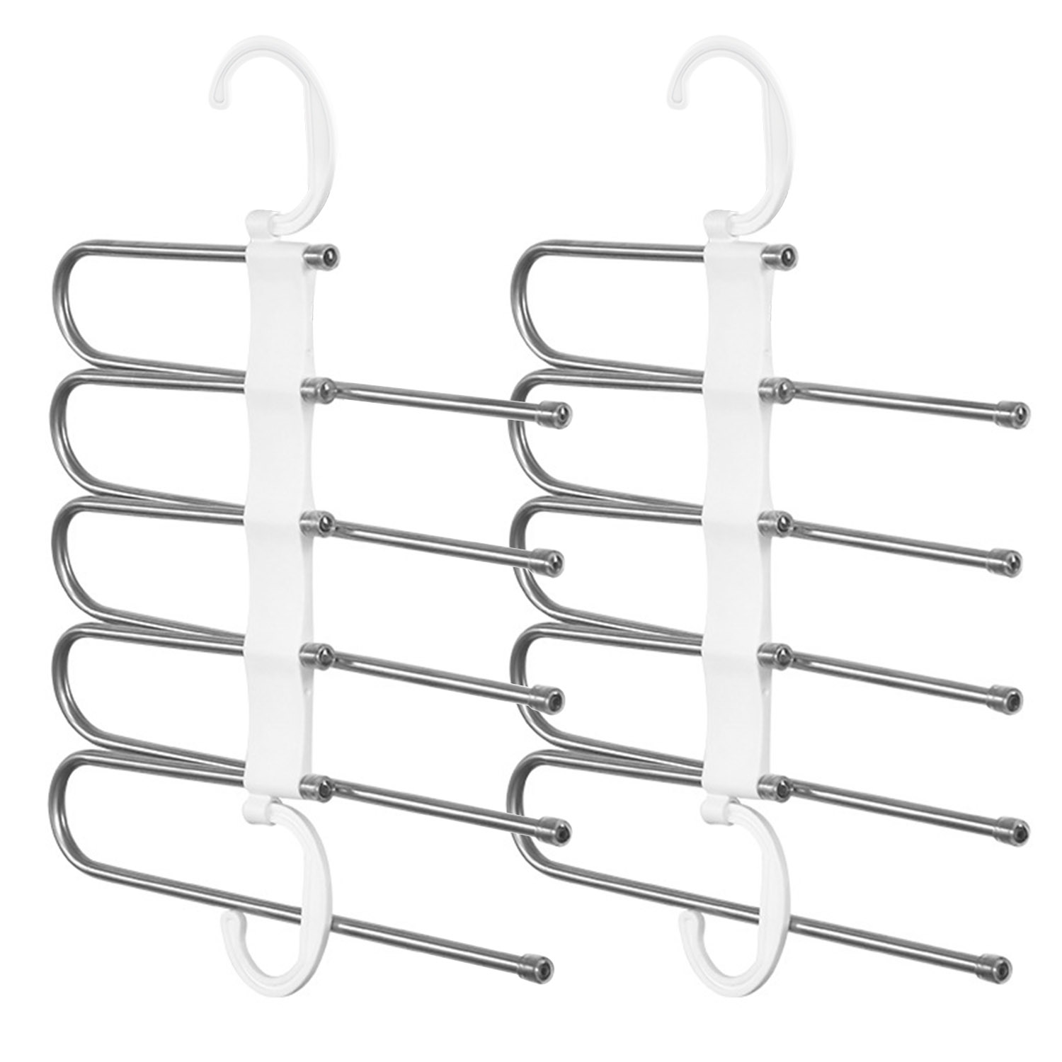 Home > Space Saving Pants Hangers 5-in-1 Stainless Steel Trouser Storage Organizer Non-Slip Clothes Rack Shelves For Pants Scarf Jeans Trousers Skirts