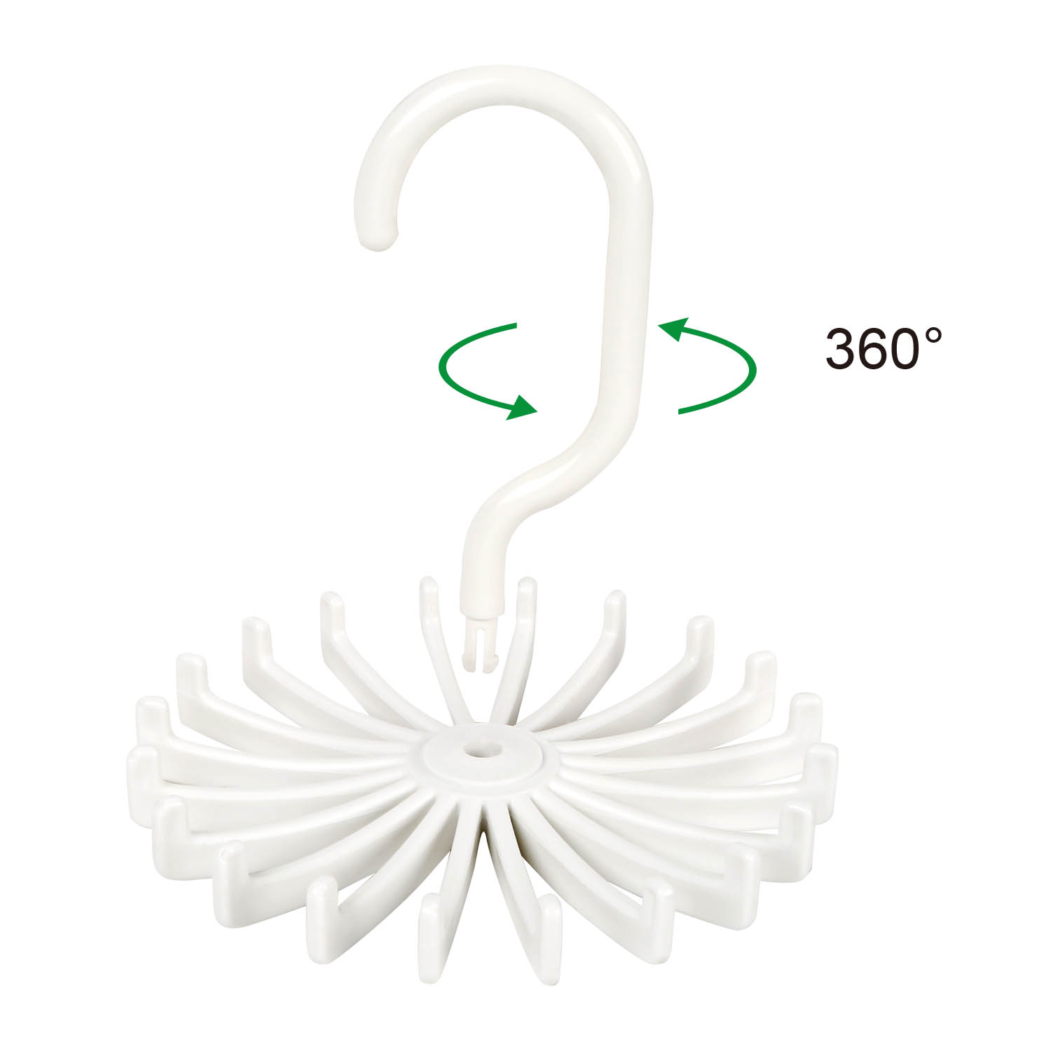 Spin your way to a dressy day! This Rotating Tie Rack is perfect to organize your favorite ties, scarves, or belts! Reduce the clutter in your closet and find the accessory you need to be at your best. Designed with heady duty plastic with 20 no-slip hangers, this is a must have item for your closet.