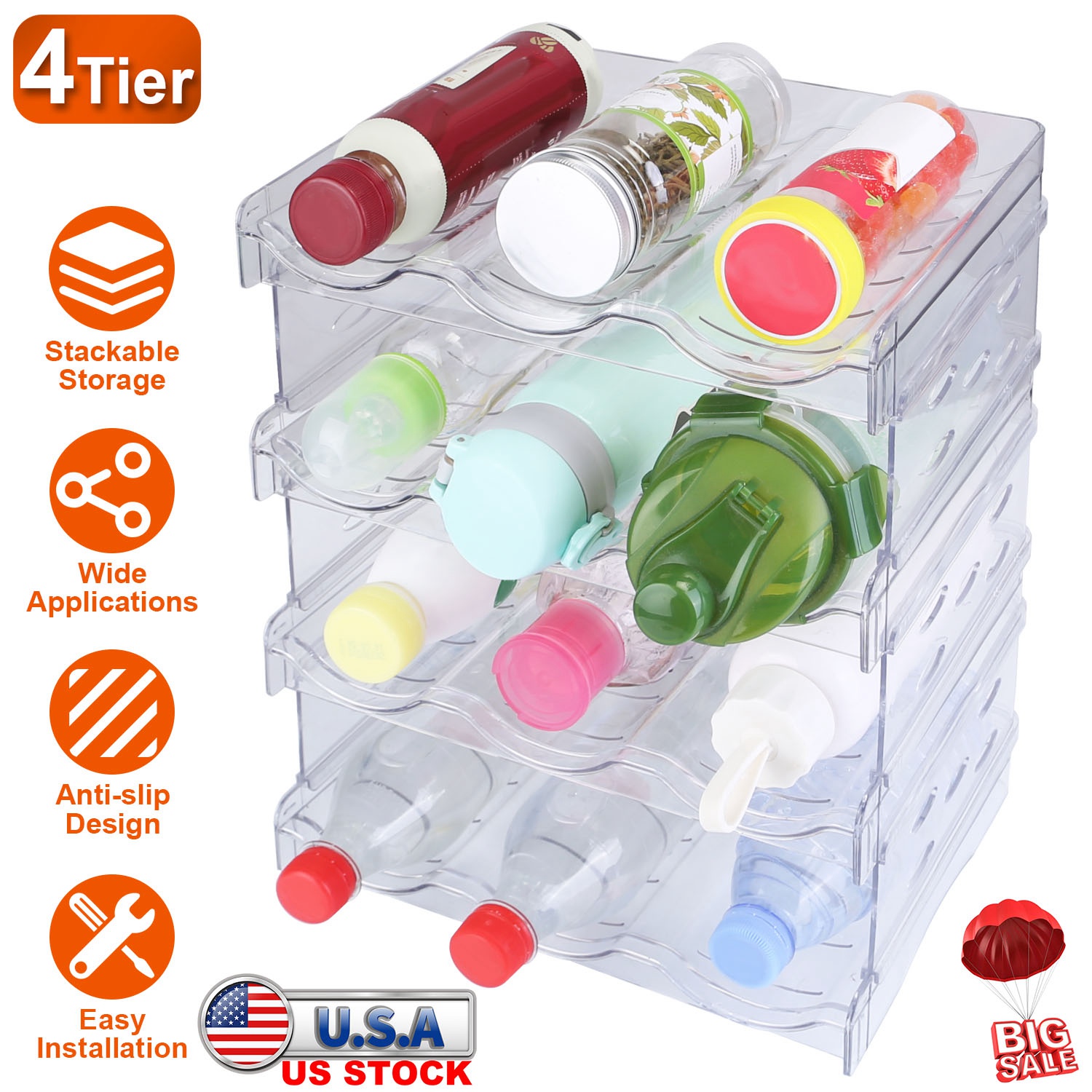 Home > 4 Tier Bottle Storage Holder 12 Bottles Transparent Stackable Bottle Organizer Standing Drink Holder Shelf for Kitchen Fridge Cabinet Pantry