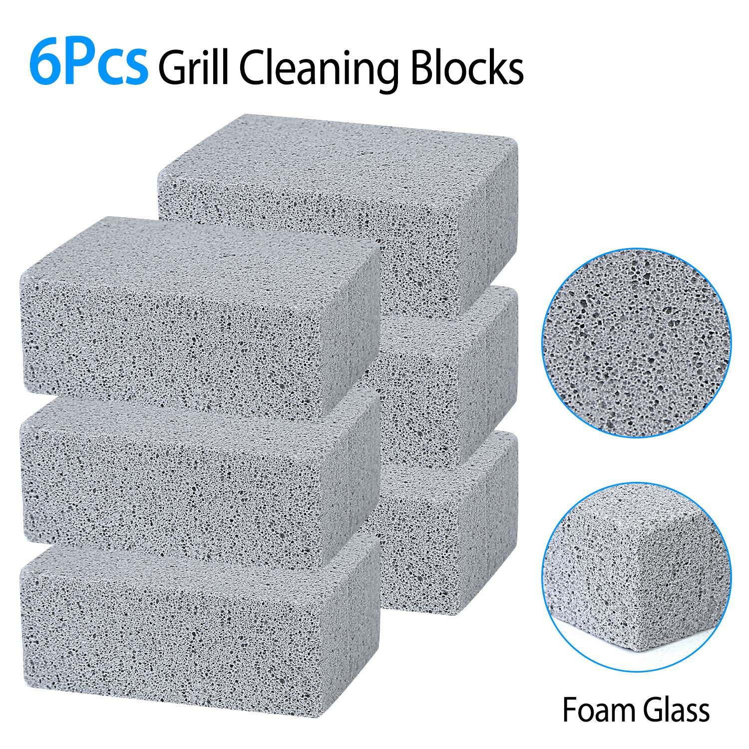 Are you tired of your grill brush breaking off, getting into the food? STOP! Here come this iMounTEK 6Pcs Grill Cleaning Blocks. Made of non-porous abrasive foam glass and is about 3.9 x 1.57 x 2.75 inches, it is perfect for your palm and can help you grease, stains, residues and dirt without scratching surfaces. Typically one grill cleaning block lasts about 4-5 cleanings. No more worry about ingesting broken-off brush bristles.