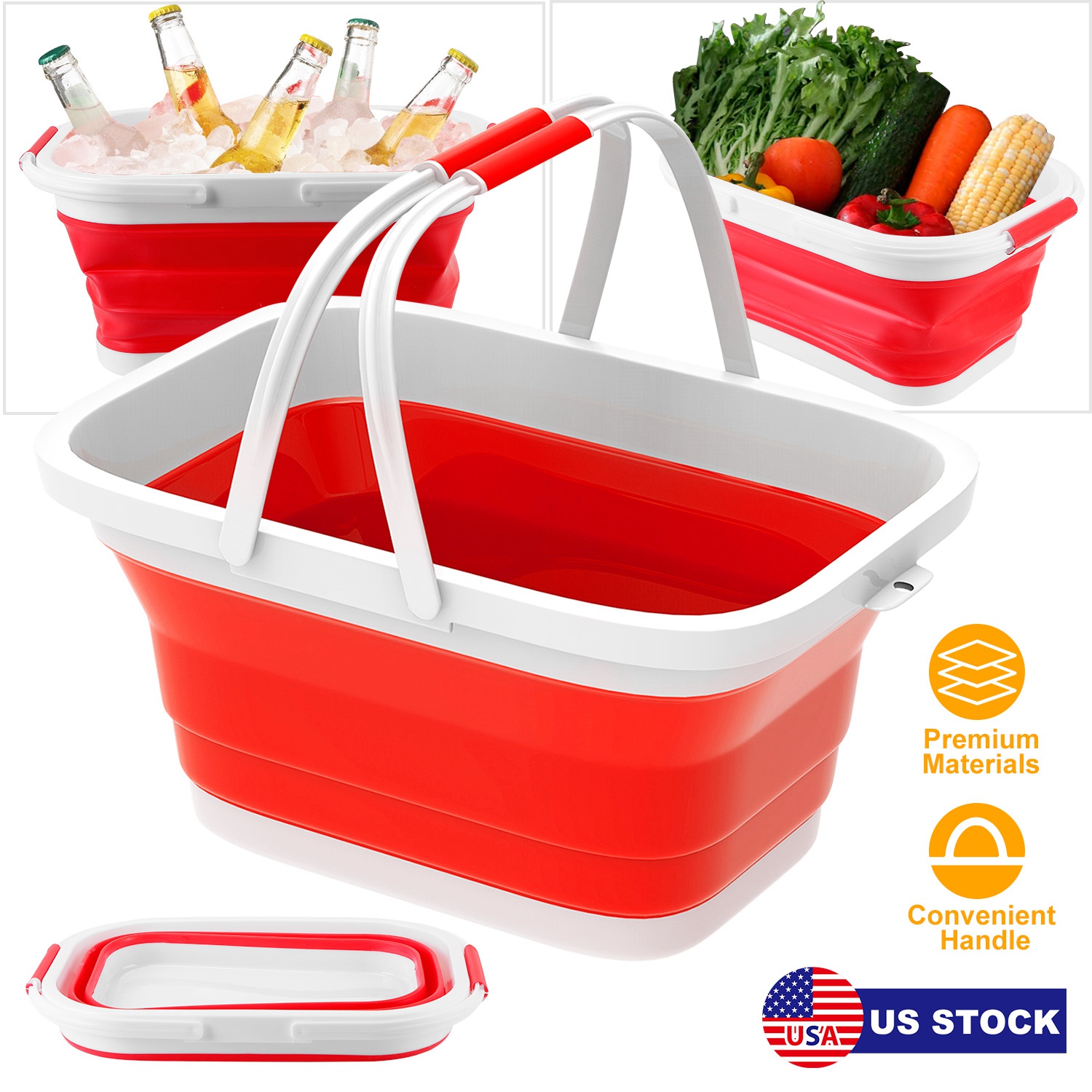 Collapsible Fruit Basket 10L Vegetable Sink Storage Basin Tub Space Saving Ice Beverage Storage Bucket For Camping Picnic BBQ