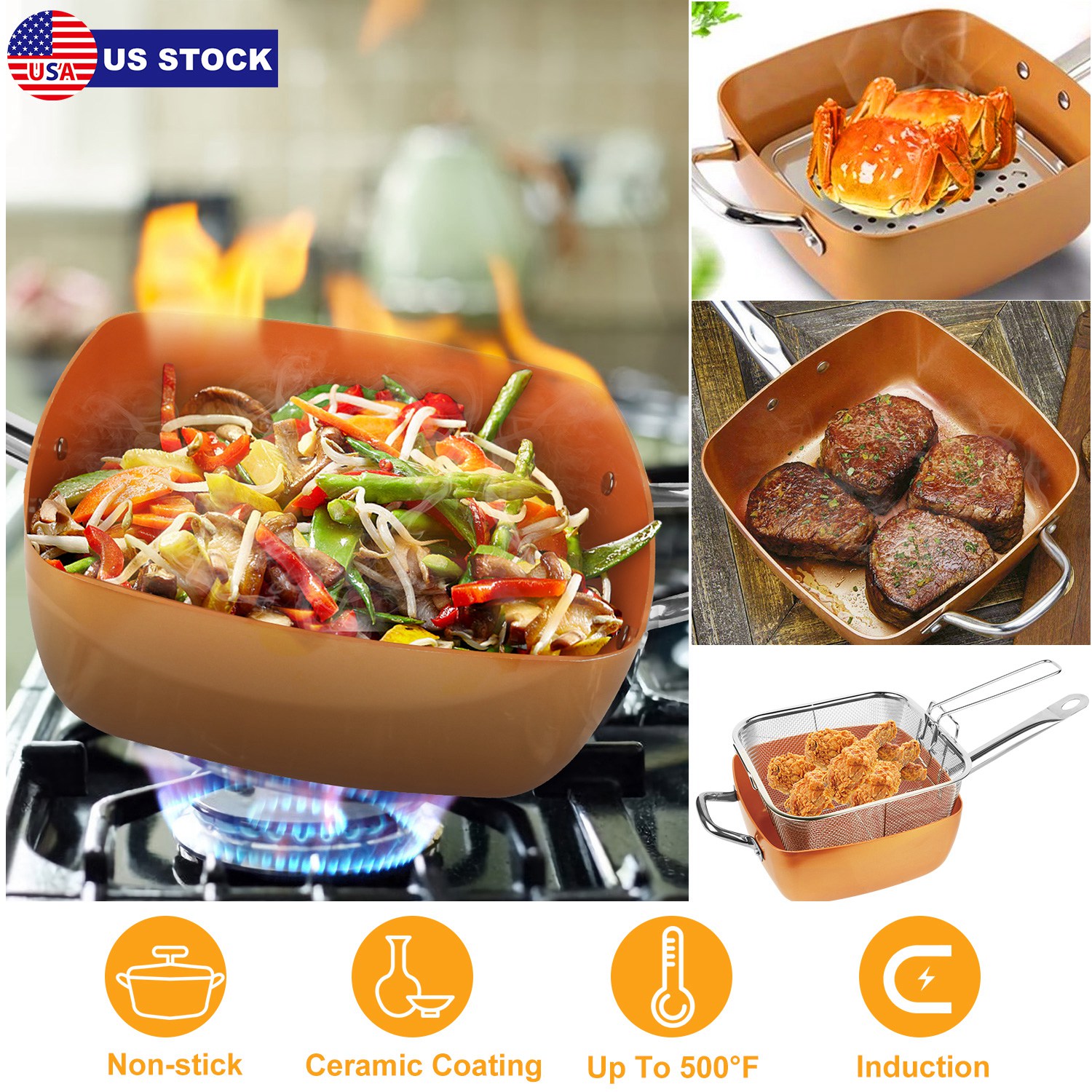 Home > 4pcs Non Stick Frying Pan Set 3.74in Deep Square Aluminum Induction Bottom Frying Pan