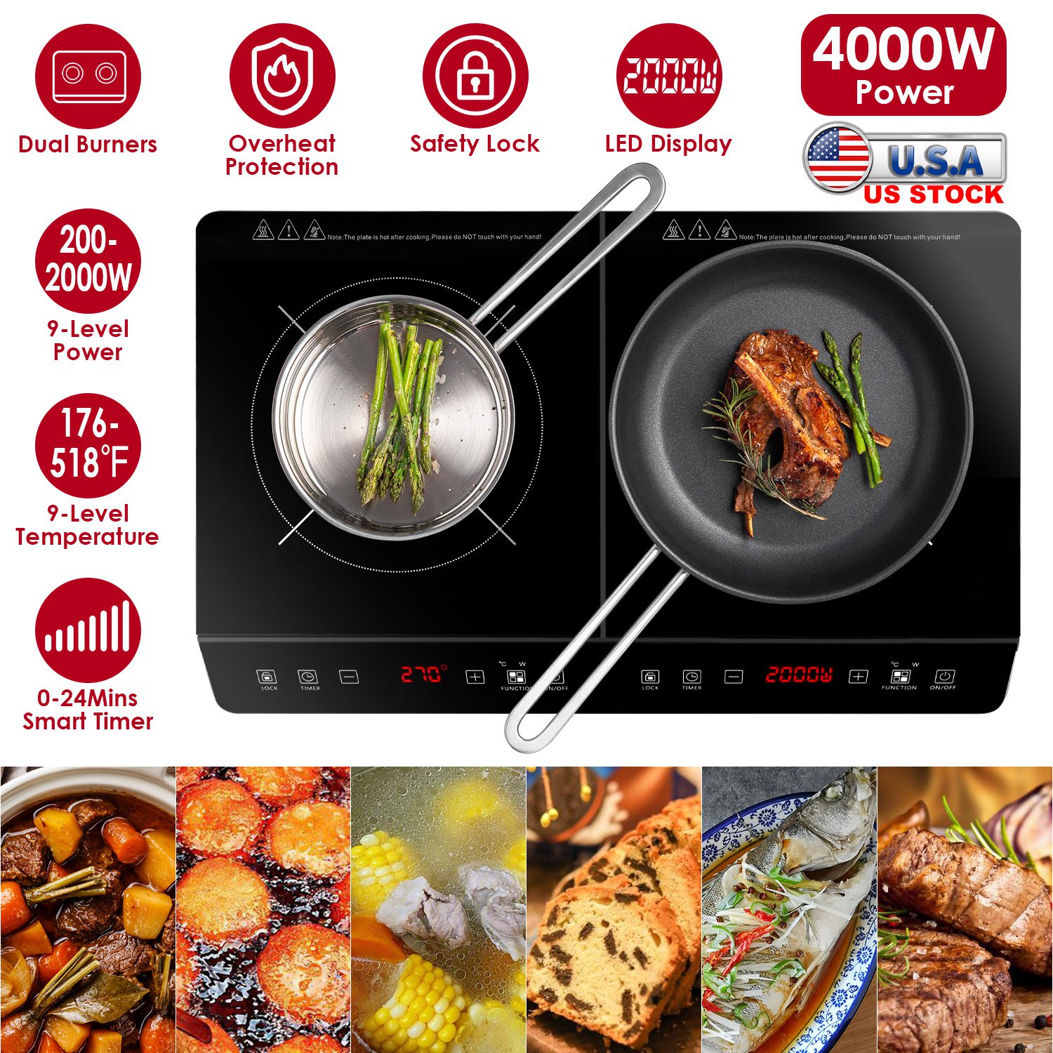 4000W Induction Cooktop Portable Double Induction Cooker Electric Dual Burner Stove Countertop Hot Plate with 9 Power 9 Temperature 0-3H Timer