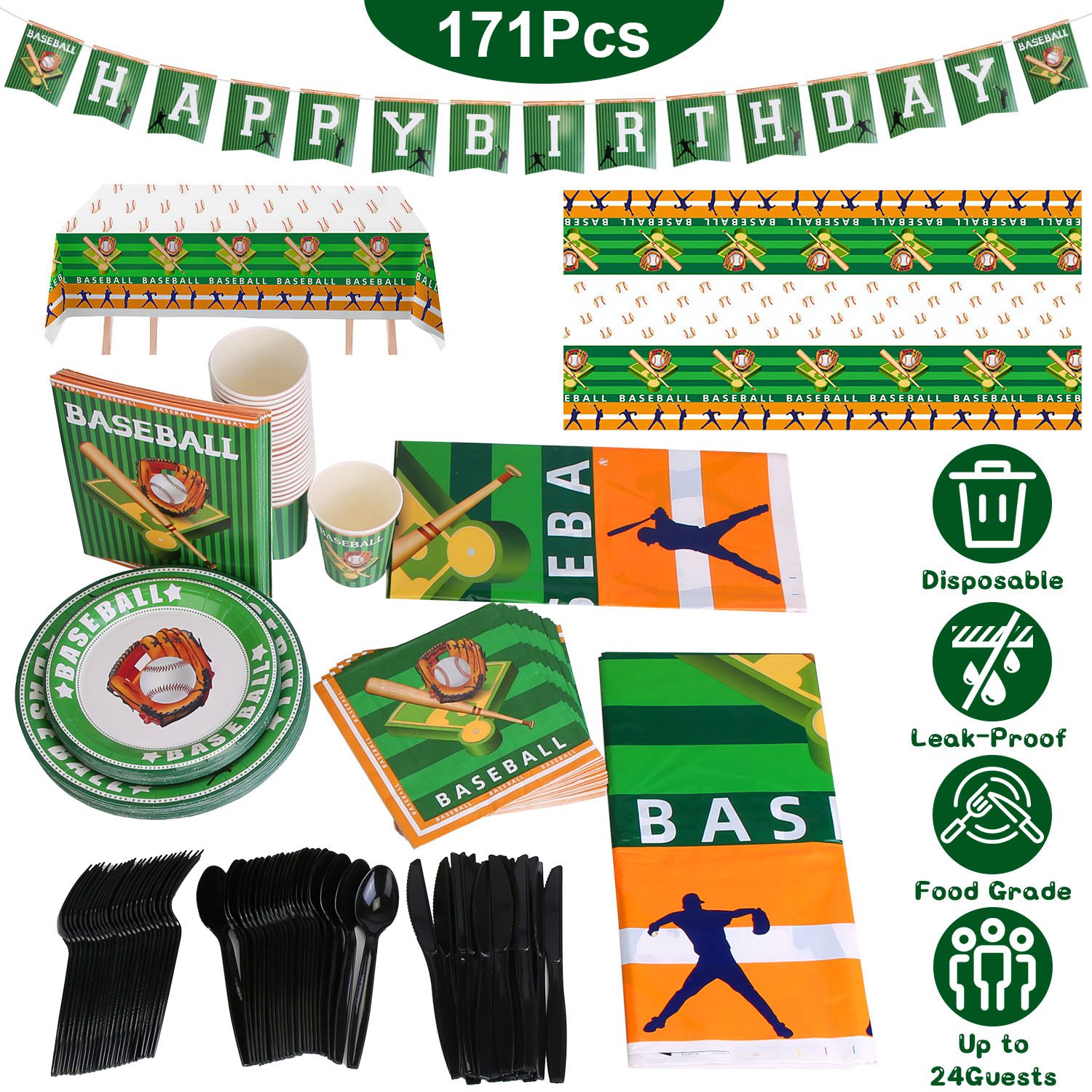 171Pcs Baseball Party Supplies Kit Baseball Birthday Party Disposable Dinnerware Set Baseball Themed Party Tableware Decorations Cups Plates Napkins S