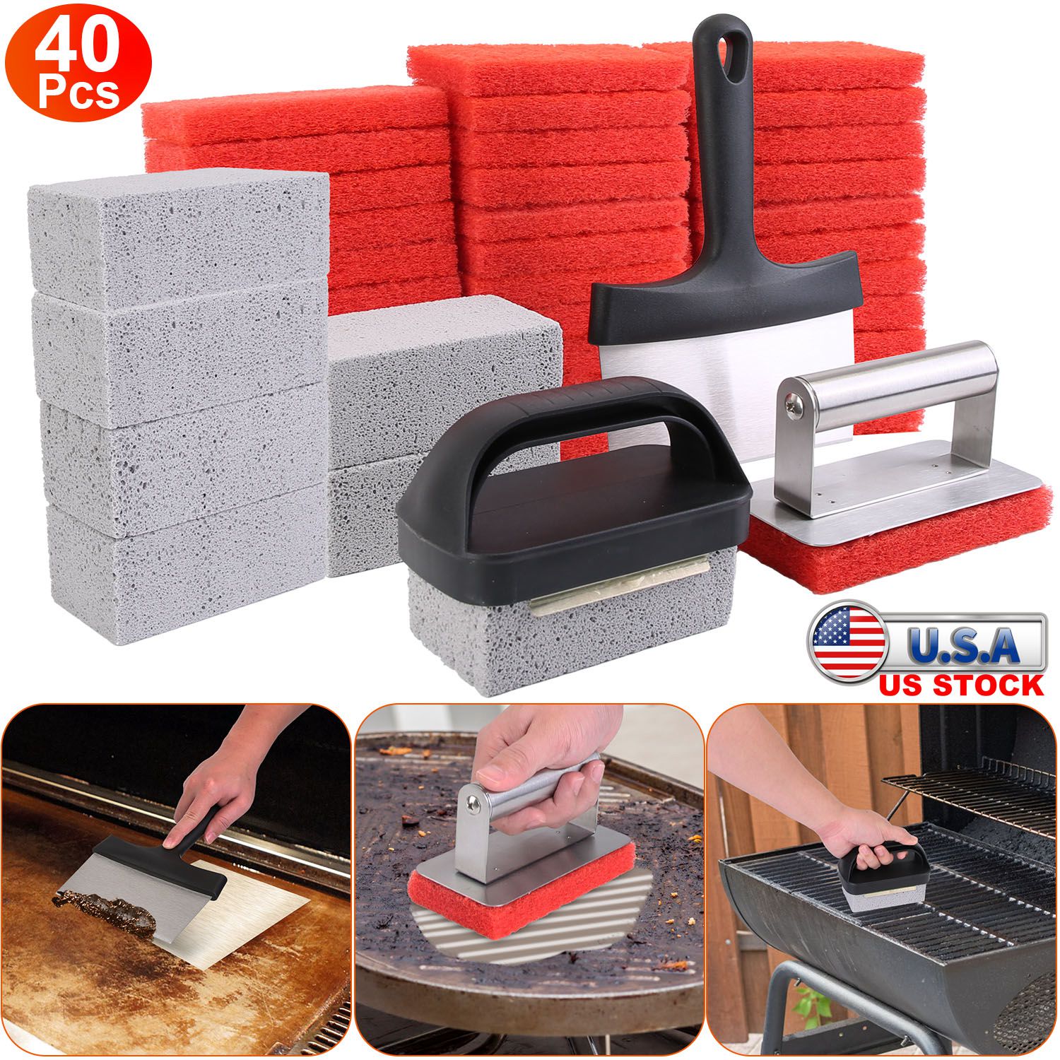 40Pcs Griddle Cleaning Kit for Blackstone with Grill Stone Griddle Scraper Griddle Brush with Stainless Steel Handle