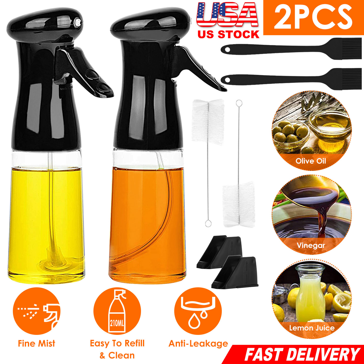 Home > Olive Oil Sprayer 2Pcs 210ML 7.1OZ Reusable Oil Dispenser Mister Refillable Glass Vinegar Bottle w/ Blaster Cleaning Brush For Cooking BBQ Roast Salad