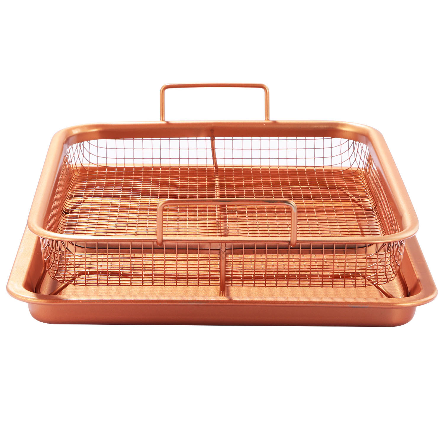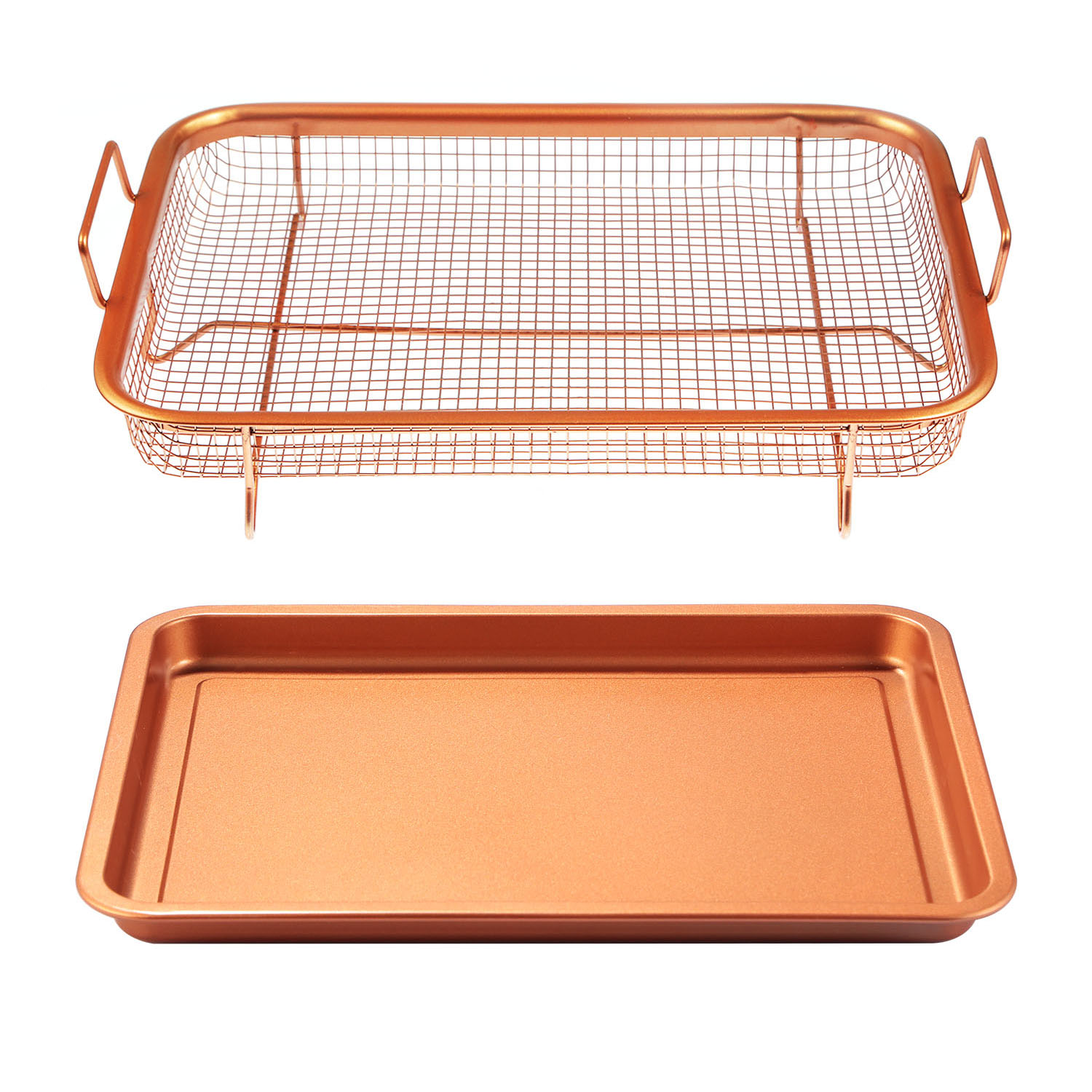 Crisper Tray Set Non Stick Cookie Sheet Tray Air Fry Pan Grill Basket Oven Dishwasher Safe Oil Free