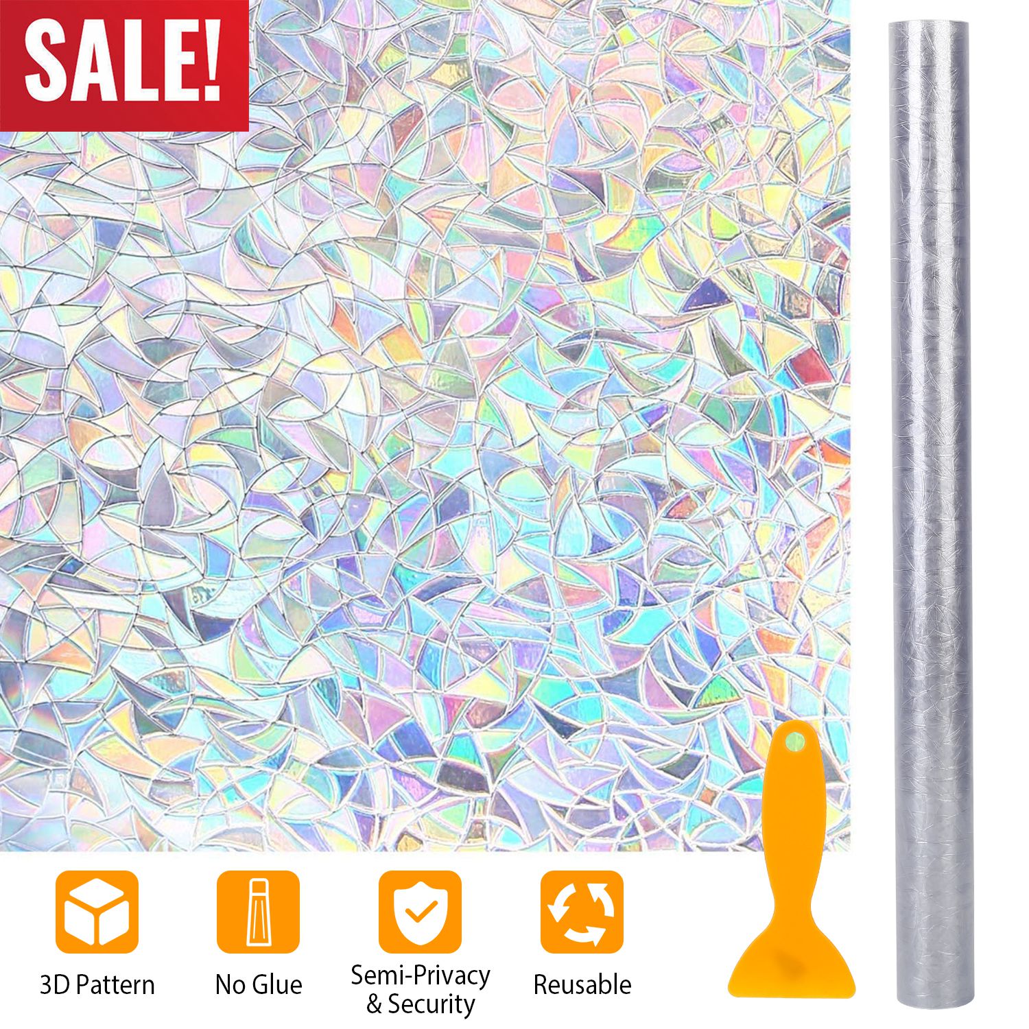 With this static cling decorative window privacy film, you can easily give your windows the look of frosted, etched, textured, or stained glass. Partial privacy protection blurs unwanted views. Irregular 3D pattern texture decorates your personal space, creating rainbow effects when sunlight hits through. There are five sizes for choice. Choose it according to your own needs.