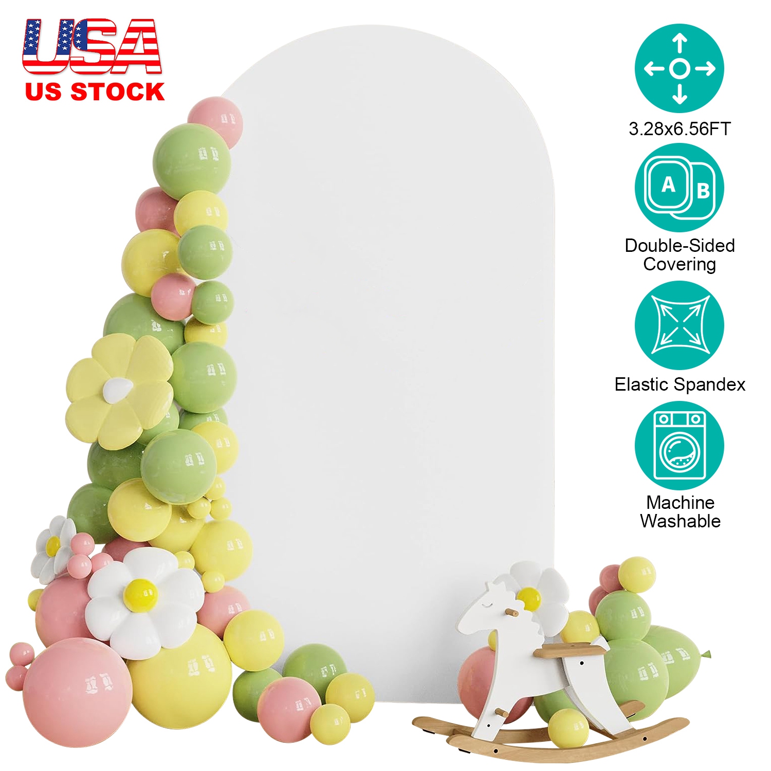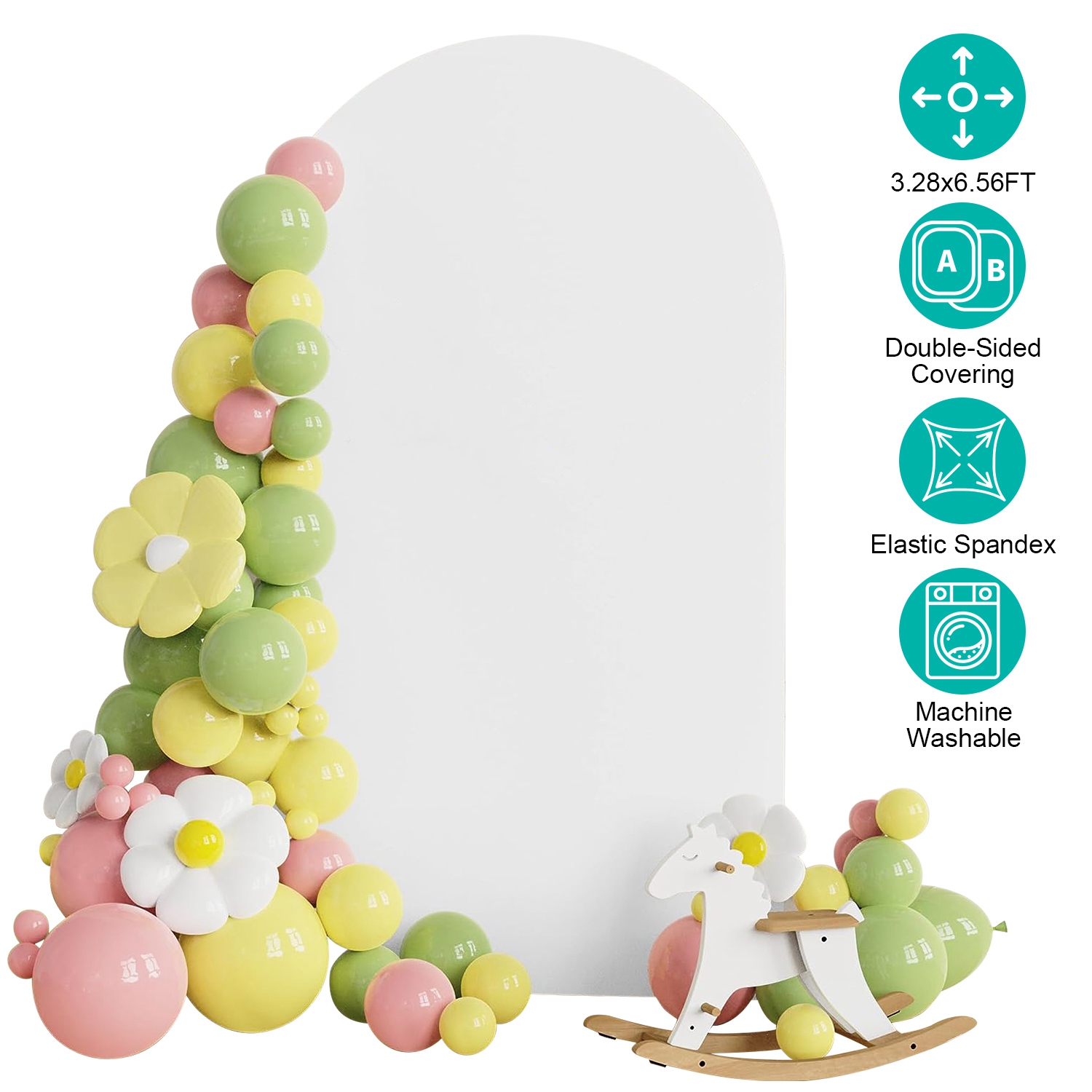 Our 3.28x6.56ft arch backdrop cover is made of durable, elastic spandex material, is not easy to wrinkle, non-reflective and reusable. Versatile and simple white color fits for diverse decoration style, meet your various demands. Designed with double-sided coverings, make the backdrop look flat, smooth, perfect and atmospheric on both side. Machine washable and low temperature drying save you time and effort. Suitable for wedding, birthday party, anniversary party and any other celebration activities’ decoration.