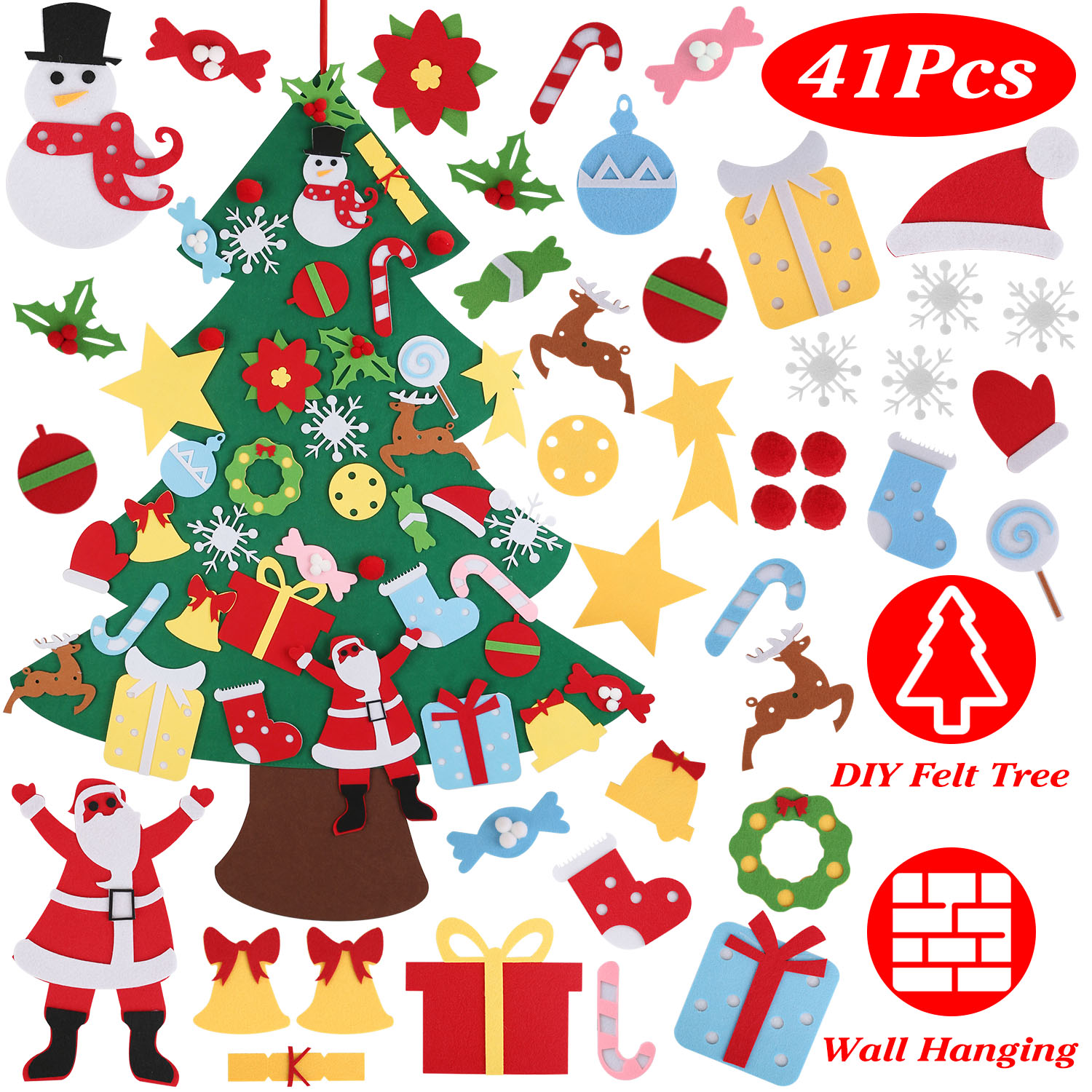 DIY Felt Christmas Tree 41Pcs Detachable Ornaments for Kids Toddler Wall Hanging Christmas Decoration Xmas Gift