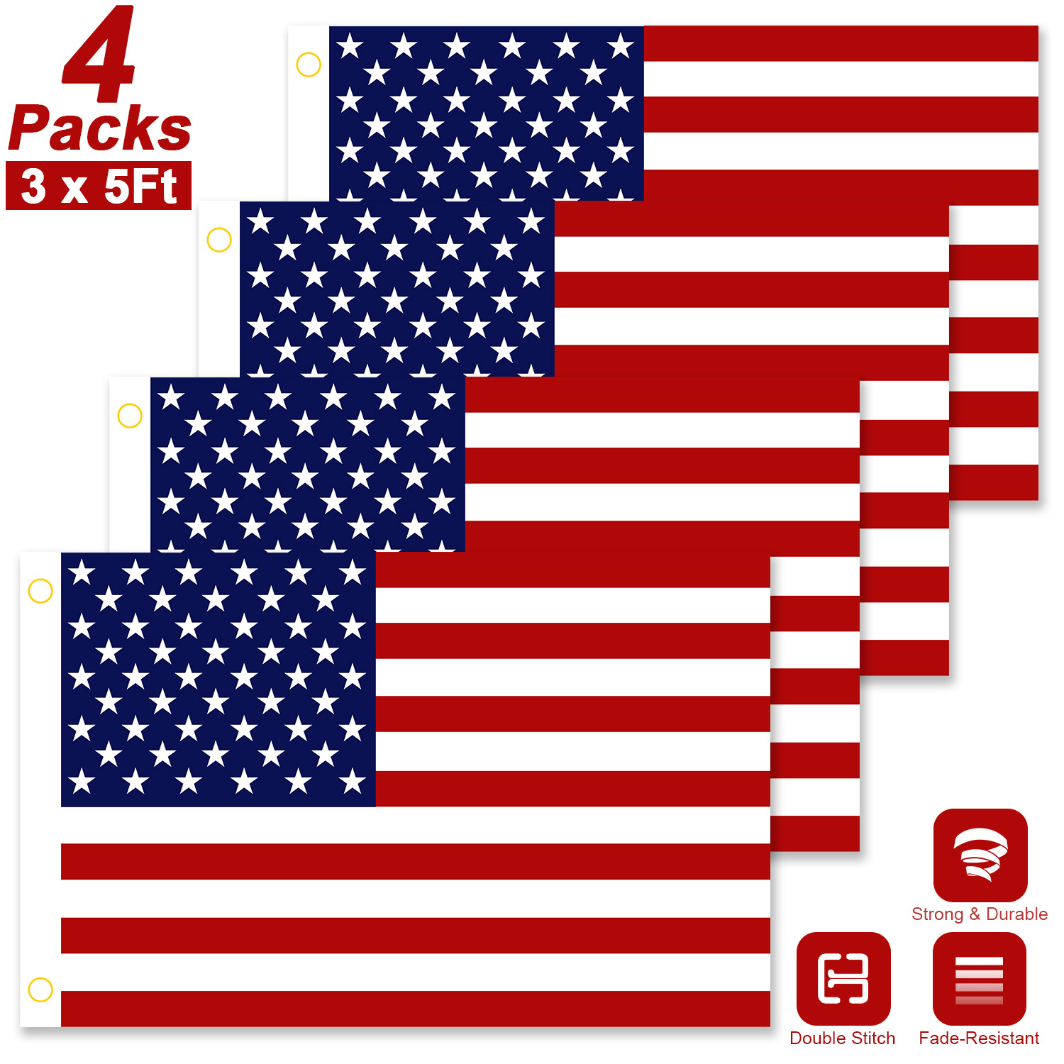 Home > 4 Pcs 3 x 5 Ft American US Flags Vivid Color and UV Fade Resistant Canvas Header Double Stitched with Brass Grommets for Indoor Outdoor
